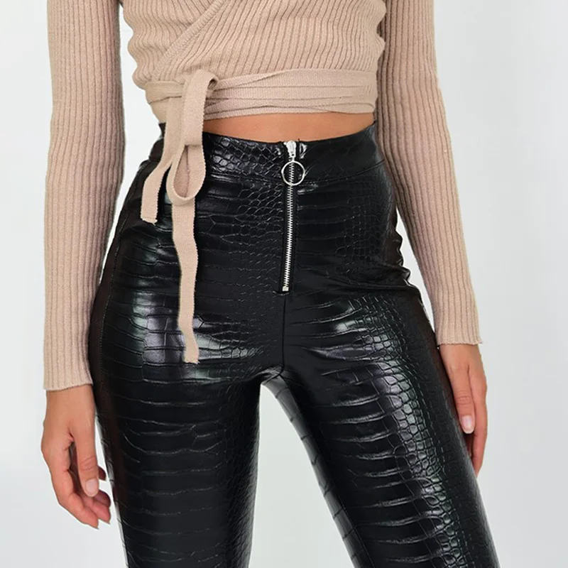 Женские кожаные брюки, классические брюки с крокодиловым узором, 2021