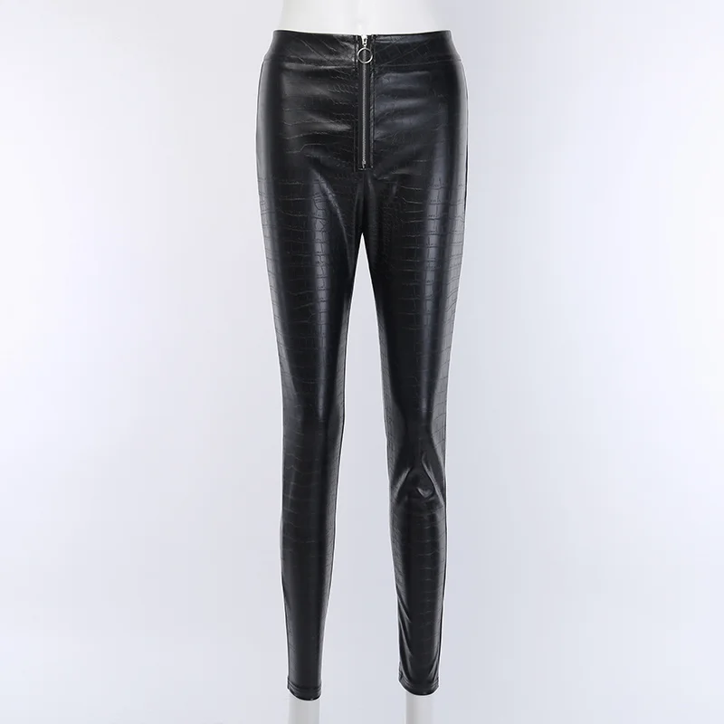 Женские брюки из искусственной кожи с высокой талией, эластичные пикантные колготки, женские облегающие универсальные колготки на молнии, женские брюки, уличная одежда