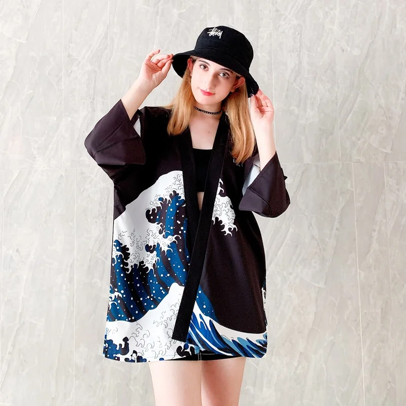 Женское кимоно, кардиган, японская одежда хаори, юката, женское летнее пляжное кимоно, женская рубашка, хаори Оби