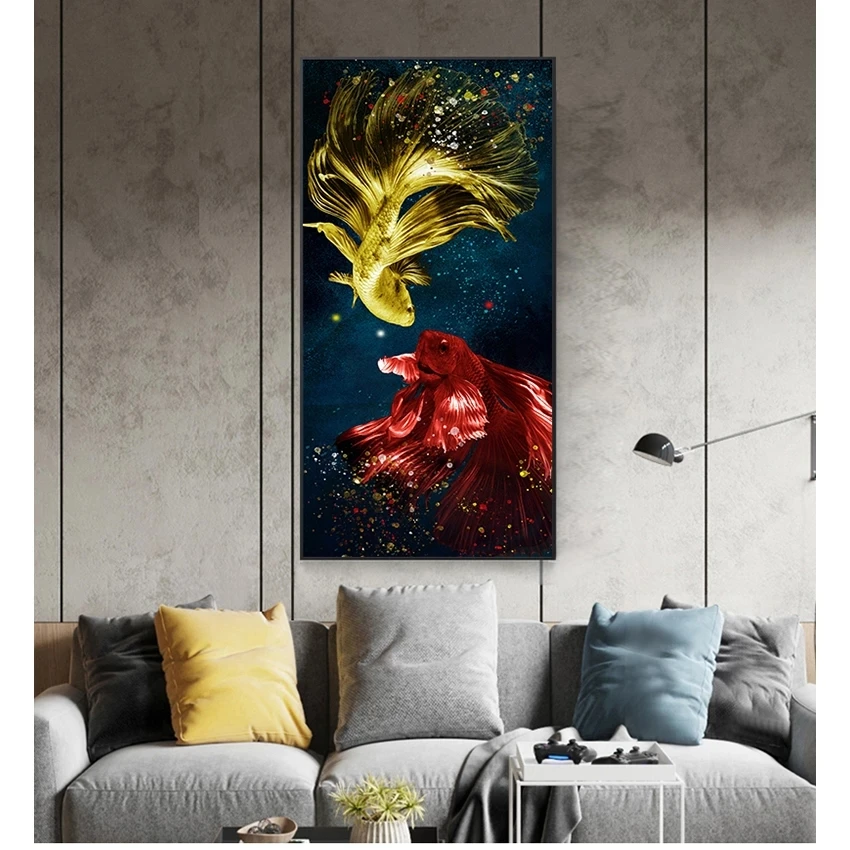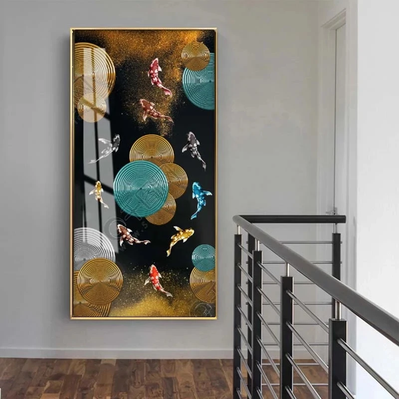 Рыба кои фэн-шуй, Картина на холсте с изображением карпа, пруда лотоса, современные плакаты и принты, Настенная картина для гостиной, домашний декор, Куадрос