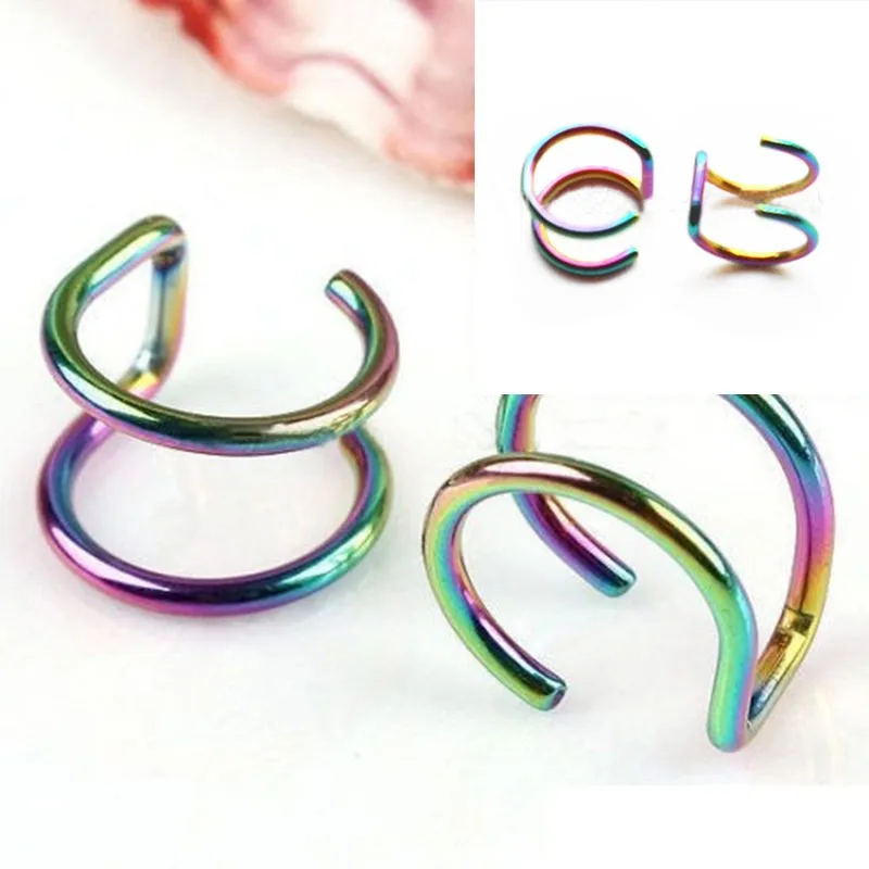 Подарок для FriendsFeatures: не пирсинг для хрящевой части уха и защищает от ветра, серьги-клипсы, простой, двойной круг DesignSize: 10 мм x 7 мм/0,39 ''x 0,28'' (прибл.) pin Диаметр: 1,2 мм/0,047 ''(прибл.)