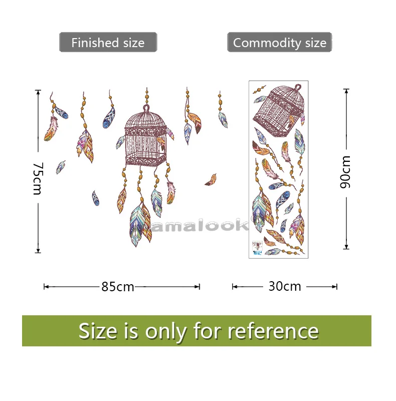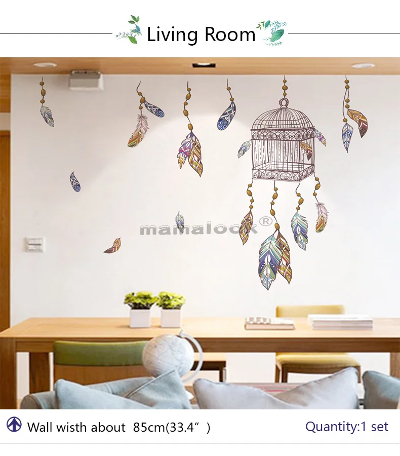 Птичья клетка красочные перья наклейки на стену спальня офис украше...