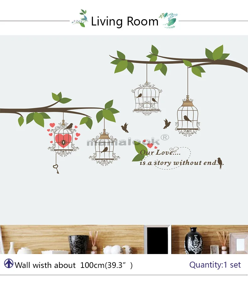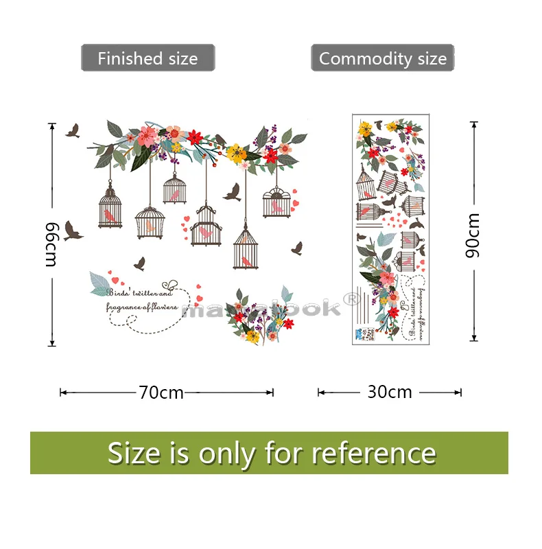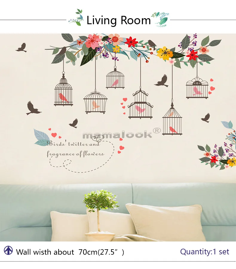 Новая Летающая птичья клетка с цветами для гостиной, детской комнаты, Настенная Наклейка s, виниловая настенная наклейка для детской комнаты, домашний декор