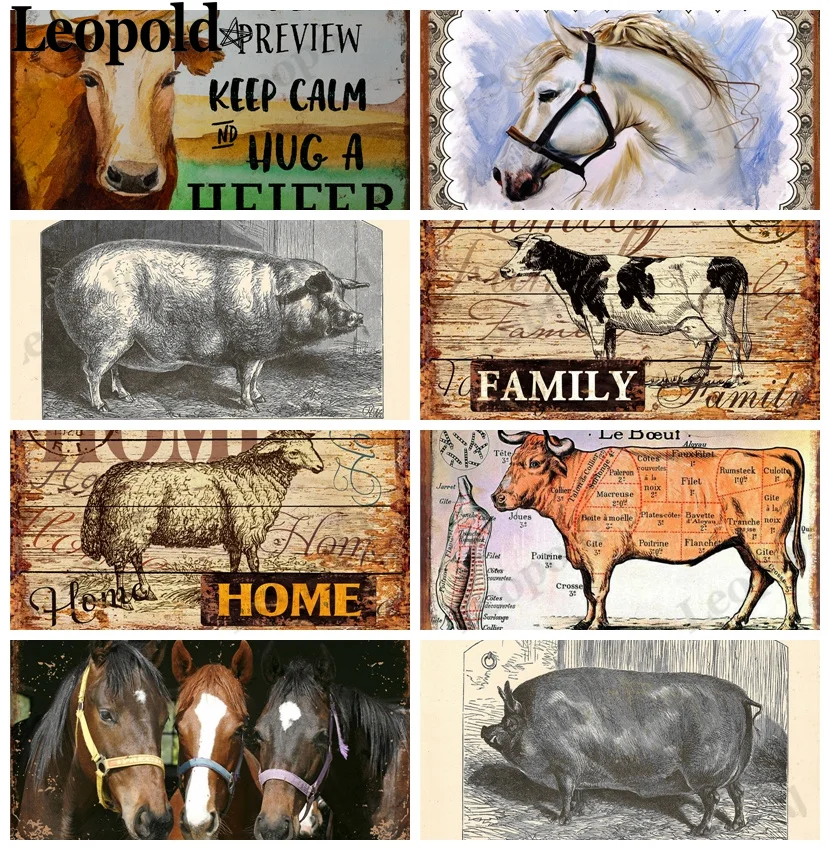 Винтажная металлическая доска с животными серия плакат с алфавитом корова петух лошадь Оловянная пластина настенное искусство ферма клуб украшение для дома
