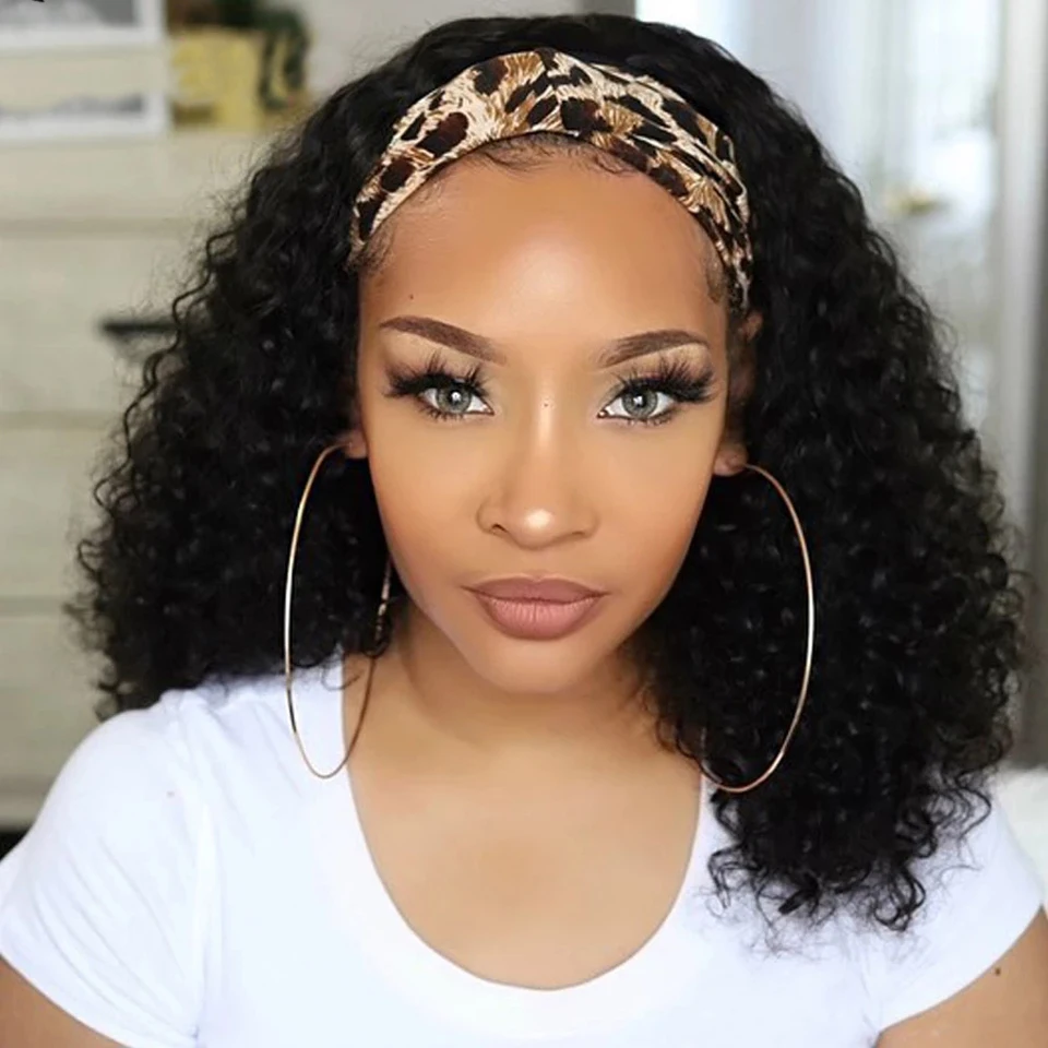 Кудрявые прямые парик с головной повязкой человеческие волосы без к...