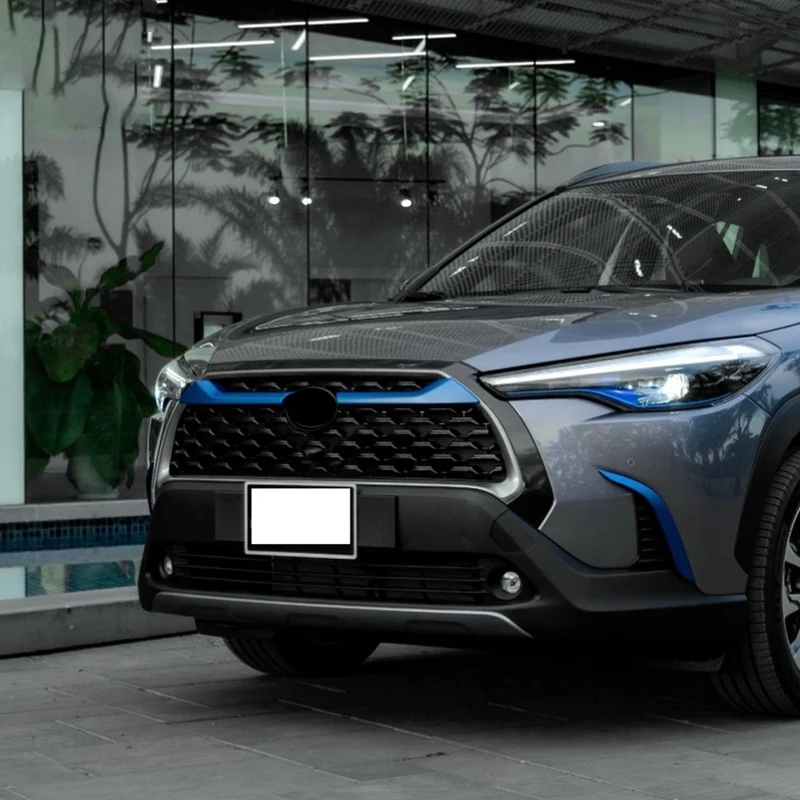 Автомобильный передний центральный гриль ABS хромированный синий передний противотуманный светильник, лампа, рамка, крышка, отделка, внешний гарнир для Toyota Corolla Cross 2020 2021