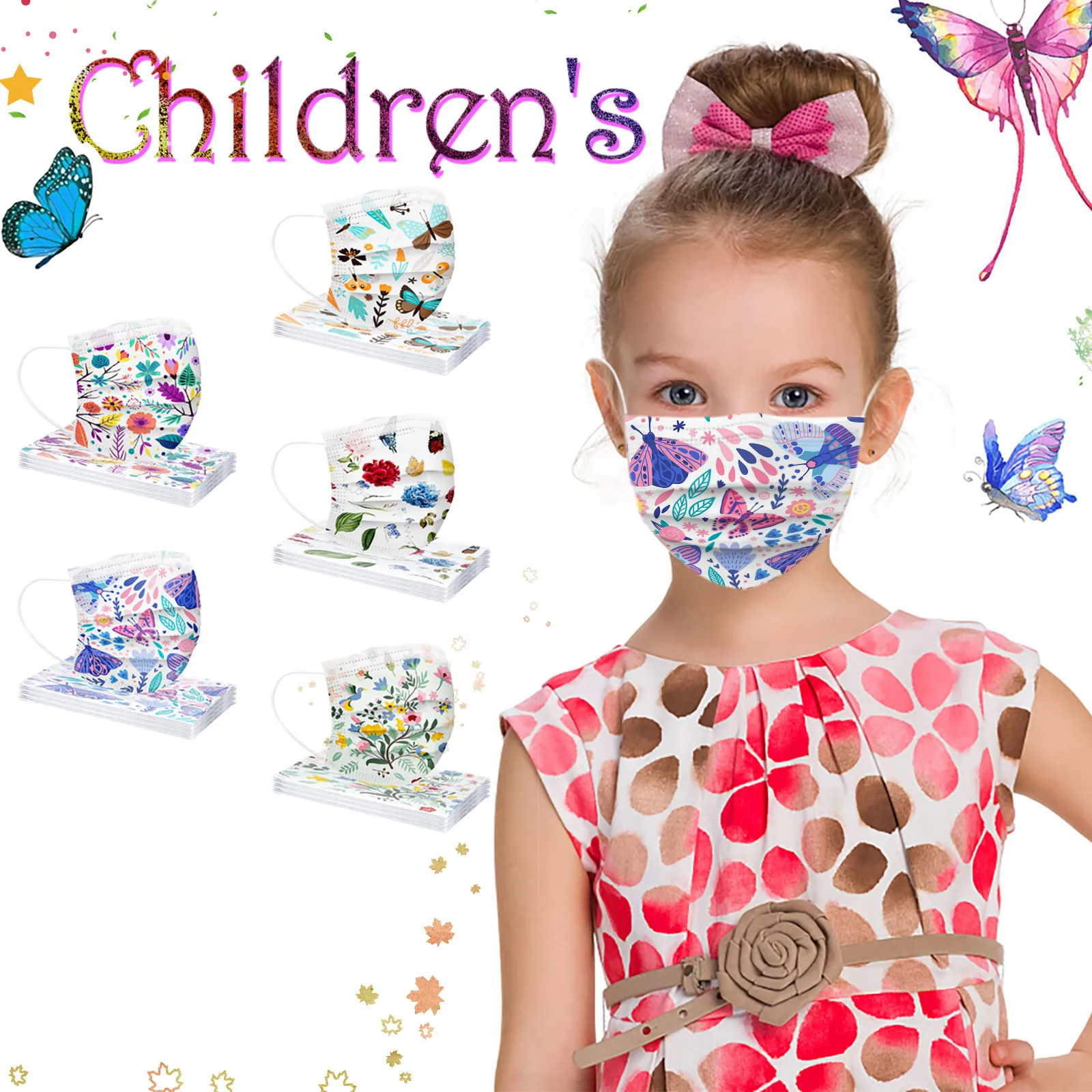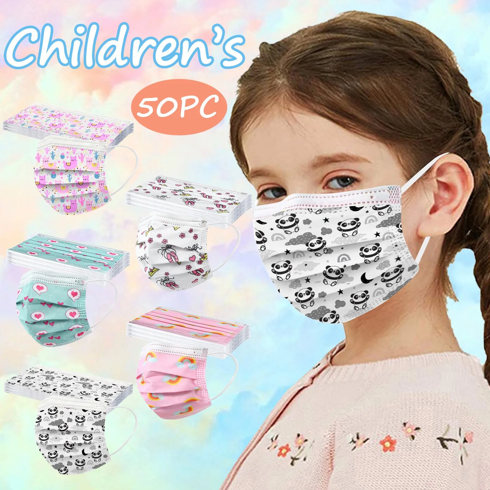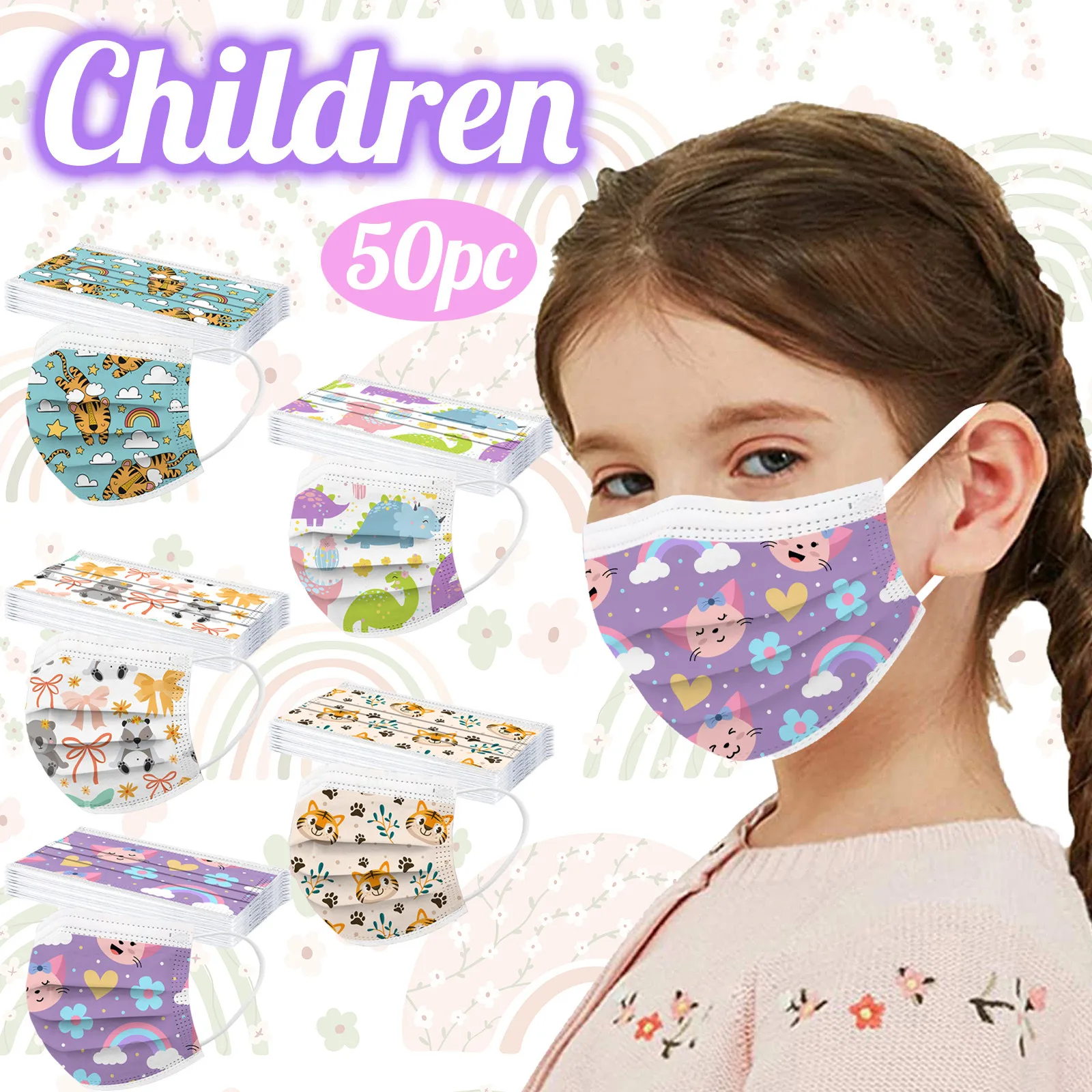 50 шт., детские одноразовые Мультяшные маски со звездным цветочным принтом