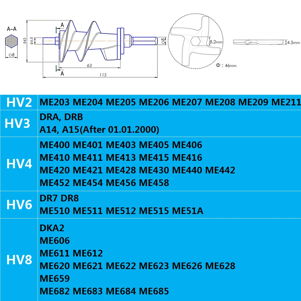 Винт для мясорубки 115 мм и лезвие 3 шт. для Moulinex HV2 ME20 HV3 HV4 DR7 ME4 ME51 HV8, 1 комплект