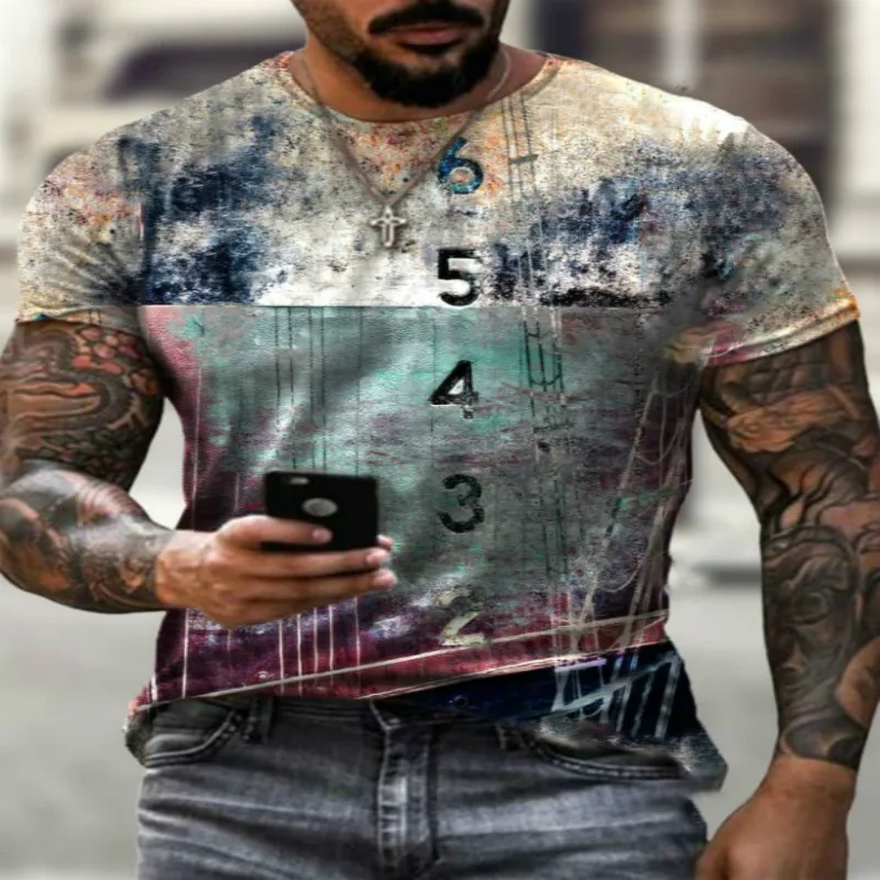 Футболка мужская в европейском и американском стиле, модная тенниска с 3D-принтом, с круглым вырезом, из полиэстера, Азиатский Размер, лето