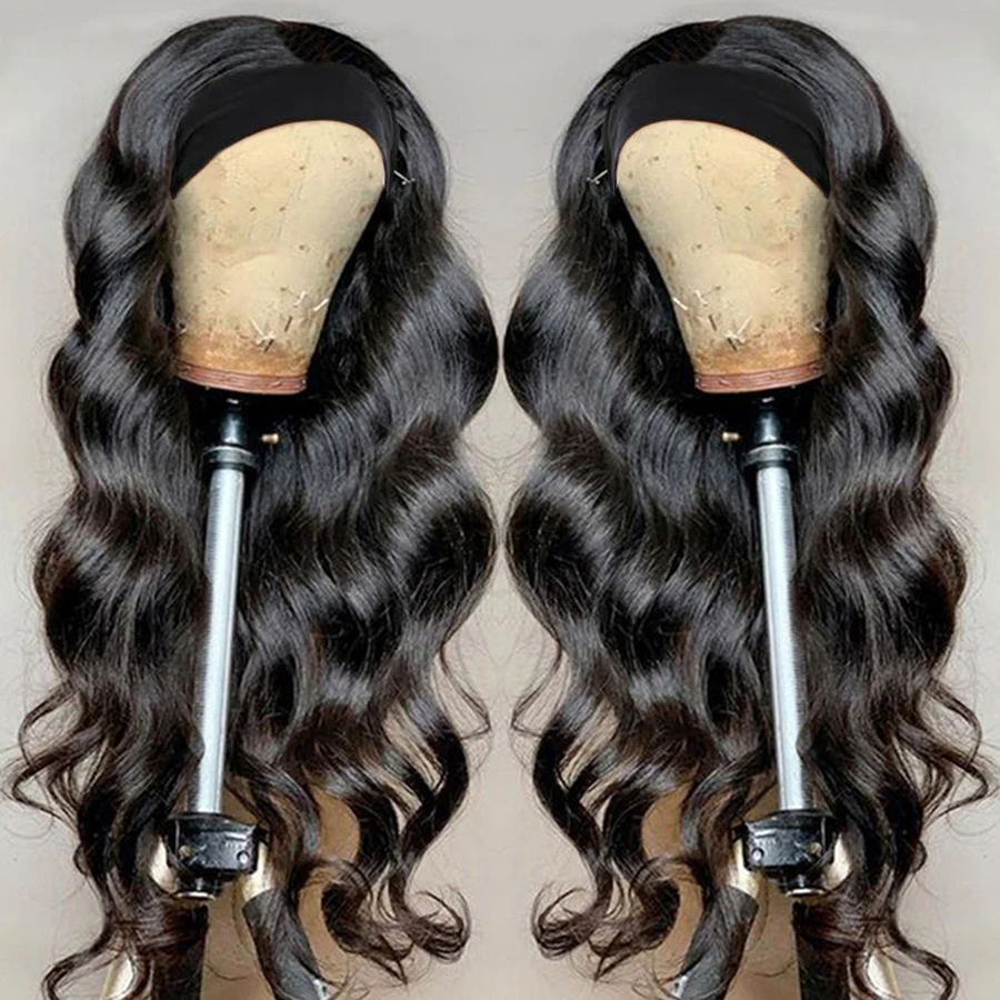 Бразильские волнистые парик с головной повязкой человеческие волосы...