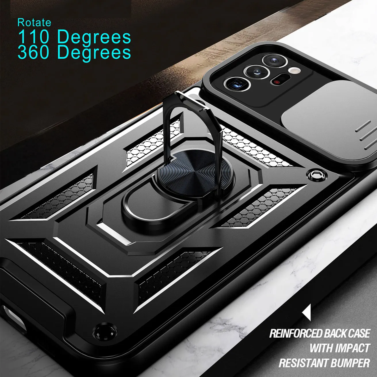 Чехол-накладка для Samsung Galaxy A52, A72, A32, S20, S21, Note 20 Plus, ультрагибридный, с кольцом-держателем
