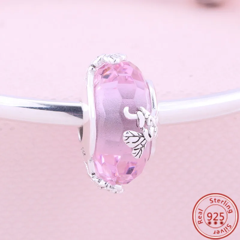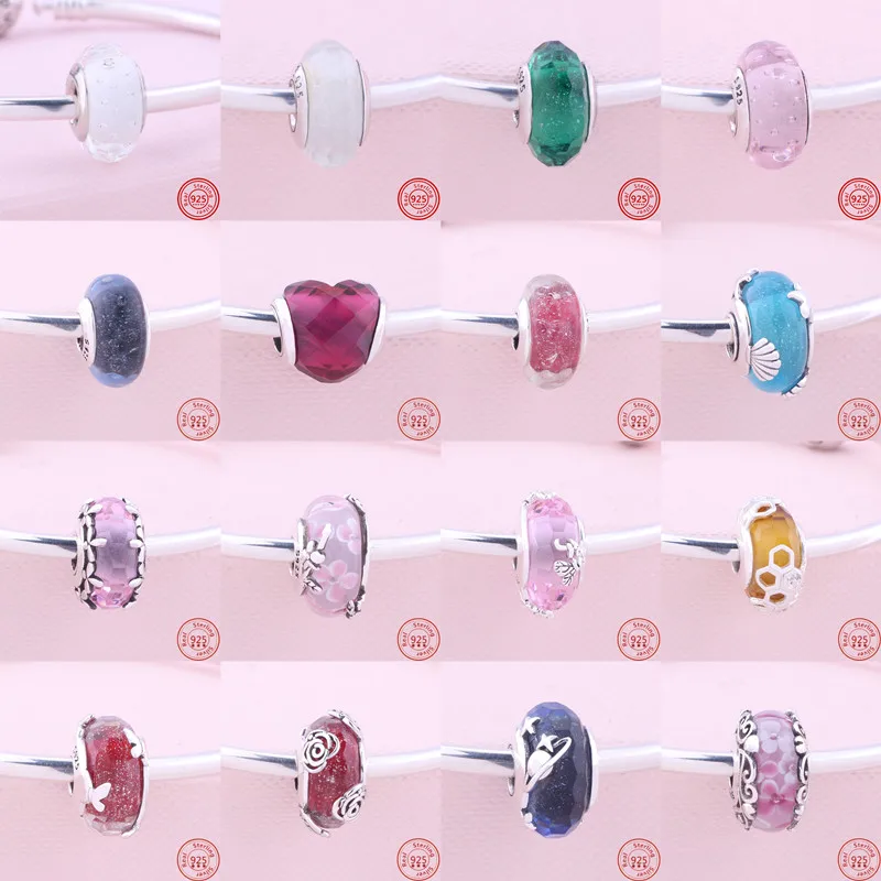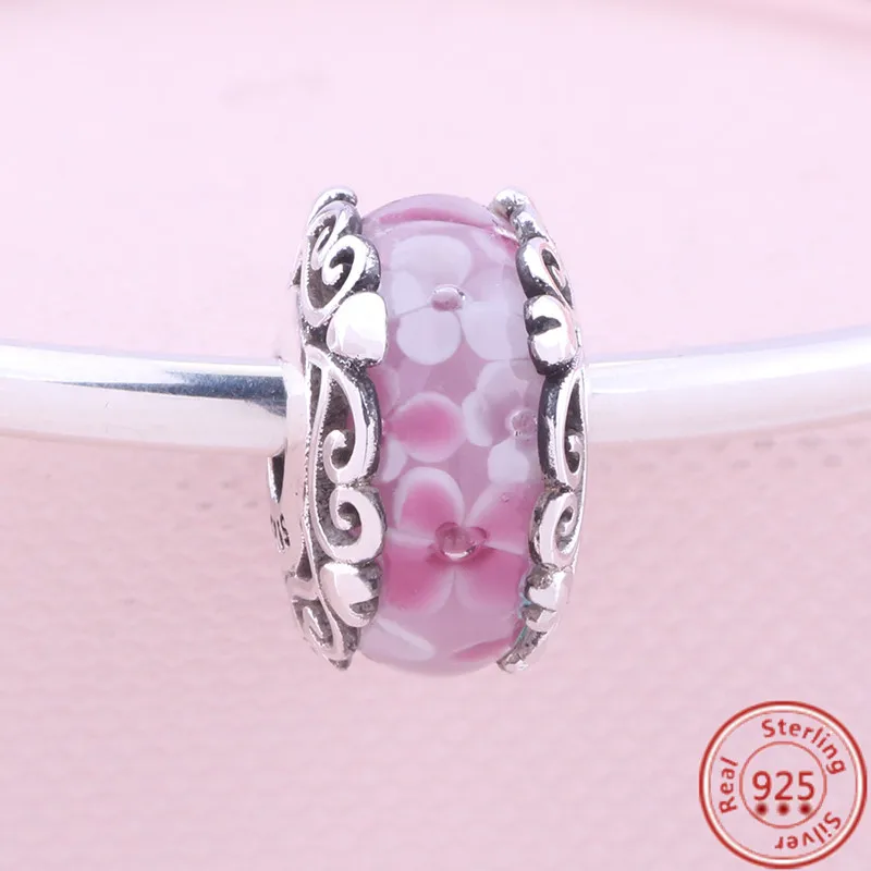 Новый 925 пробы серебряные бусины из муранского стекла цветок соты синий розовый шарм подходят оригинальный браслет Пандора DIY женский ювелирный подарок