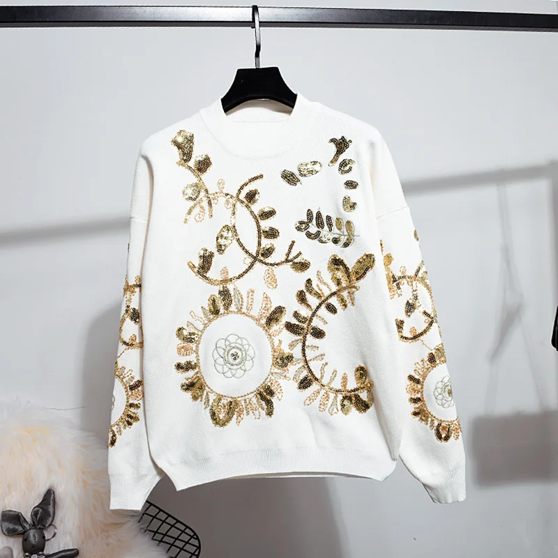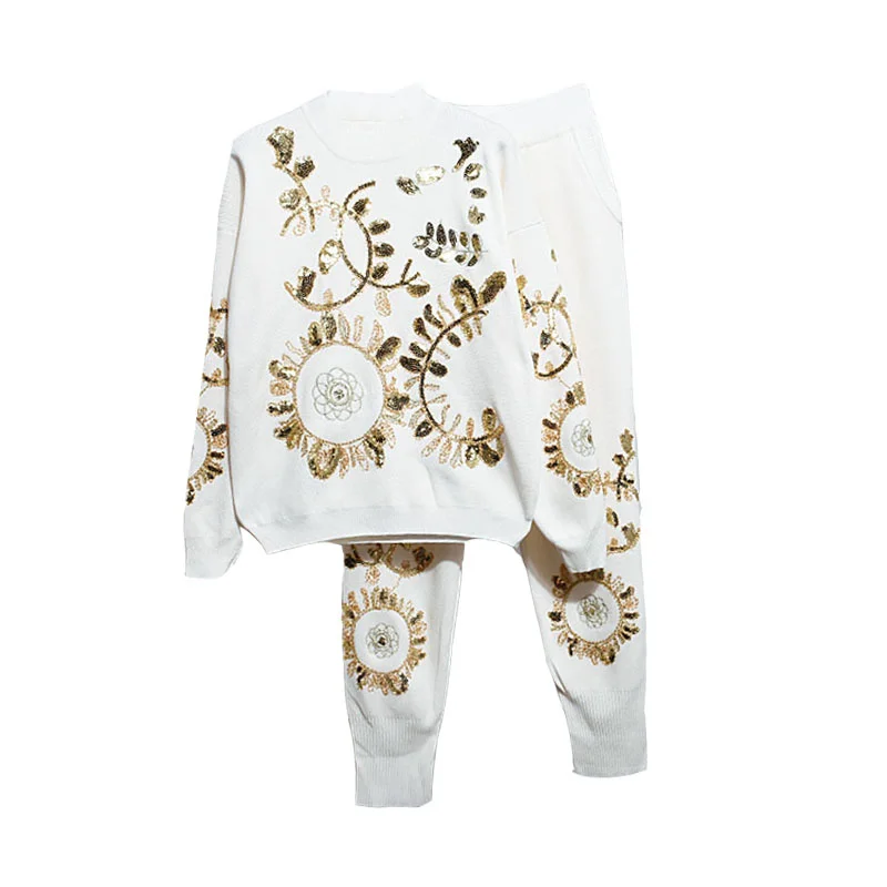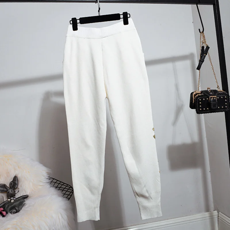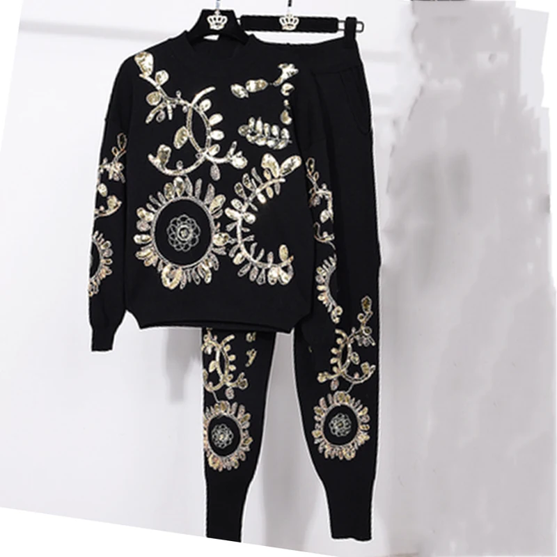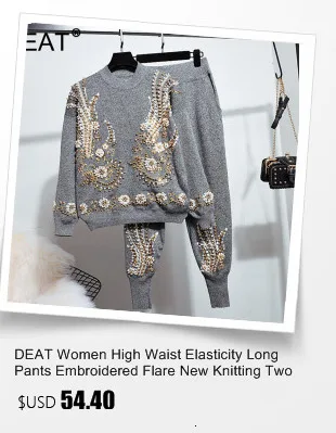DEAT Женский вязаный свитер с блестками, длинные штаны, Новое поступление, комплект из двух предметов, модный темперамент, весна-осень 2022, 11D1904