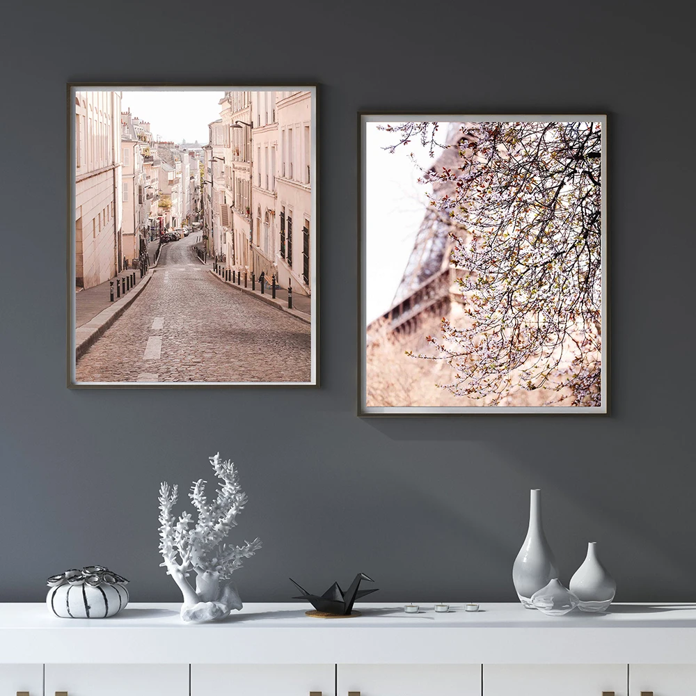 Модная Картина на холсте с Пастельными розовыми оттенками Парижа, настенные картины, скандинавские плакаты и принты, настенные картины для гостиной