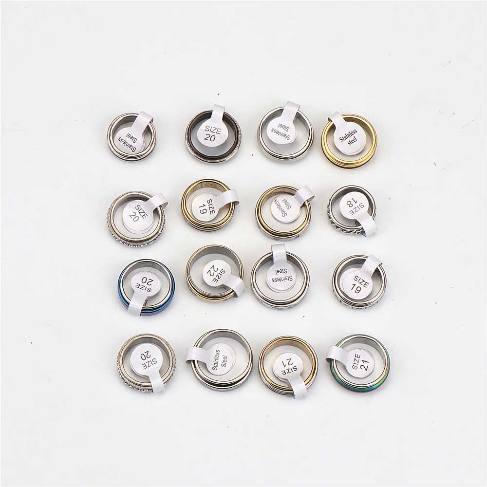 20 шт./лот кольца СпиннерМатериал: нержавеющая стальРазмер: от 17 мм до 22 мм размер США от 7 до 12Особенности: вращающиеся кольца, сброс давления:Пол: унисексКоличество: 20 шт./лотСтиль: смешанный стиль, Случайная ДоставкаУпаковка: полиэтиленовый пакет, коробка в комплект не входитВес: около 5g