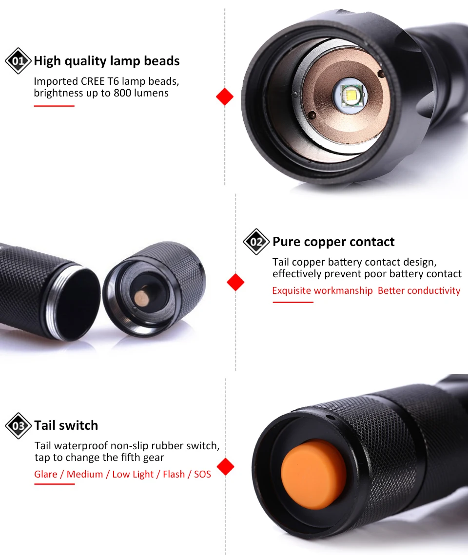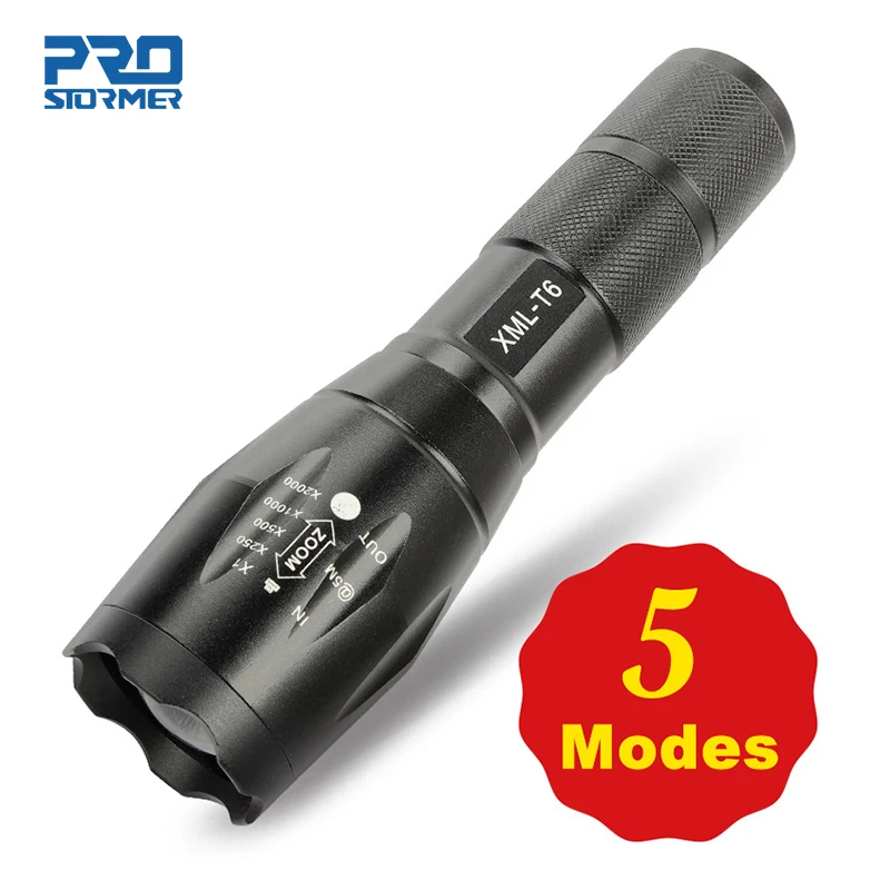Светодиодный фонасветильник 5 супер ярких фонариков Q5T6L2, водонепроницаемый портативный фонасветильник для кемпинга с аккумулятором 18650, PROSTORMER