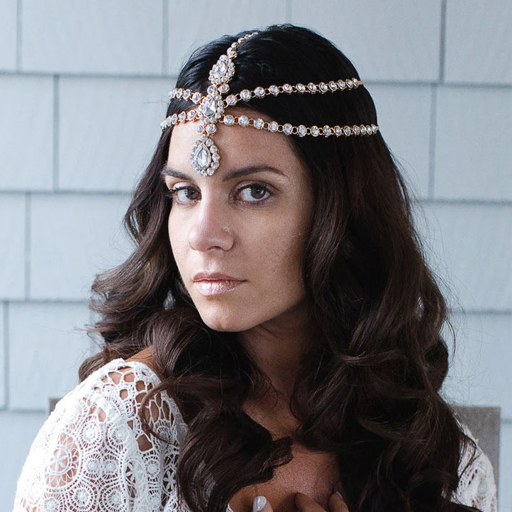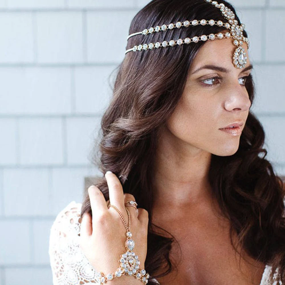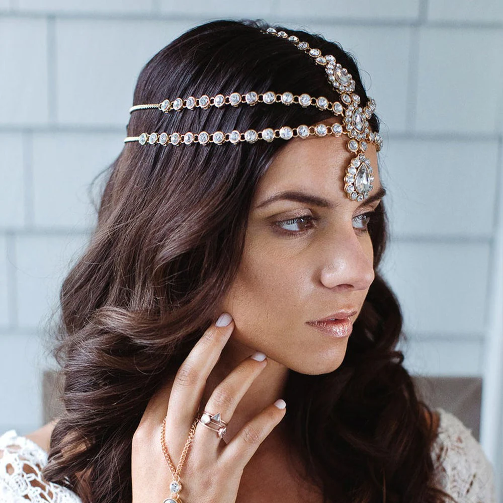 Богемные украшения для невесты Stonefans, цепочка на голову с кристаллами, аксессуары для волос, стразы цепочка украшение на лоб, Свадебные Украшения ручной работы