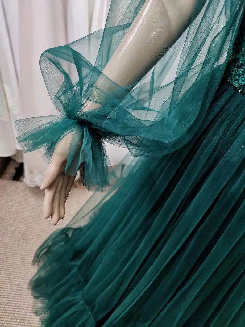 Зеленое платье для выпускного вечера с юбкой-годе, аппликацией из б...