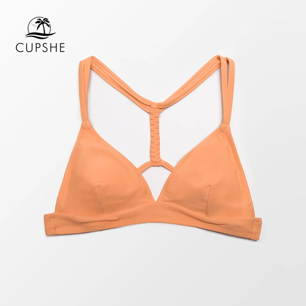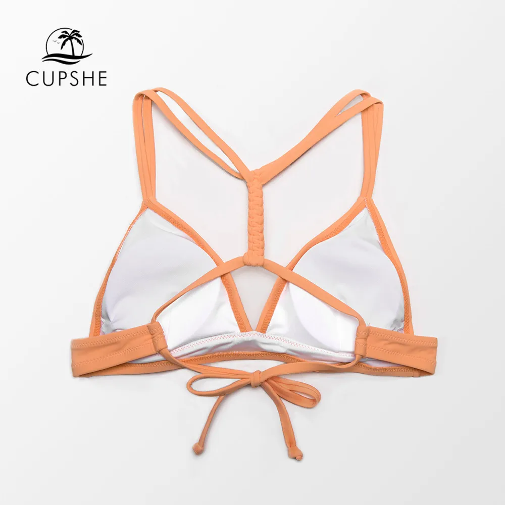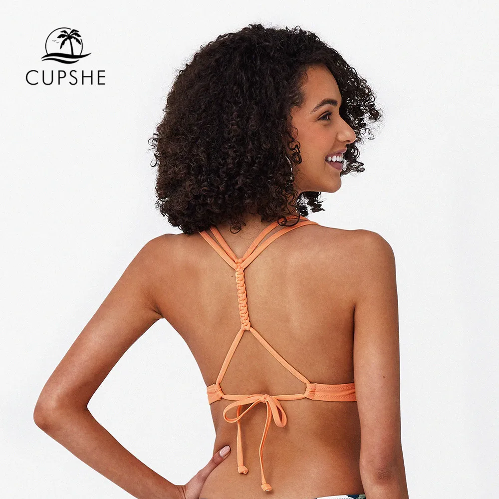 CUPSHE, треугольные плетеные бикини, Топ для женщин, Одноцветный, оранжевый, со шнуровкой, съемные подушечки, топ, 2022, Раздельный купальник, Купальный бюстгальтер, Топ