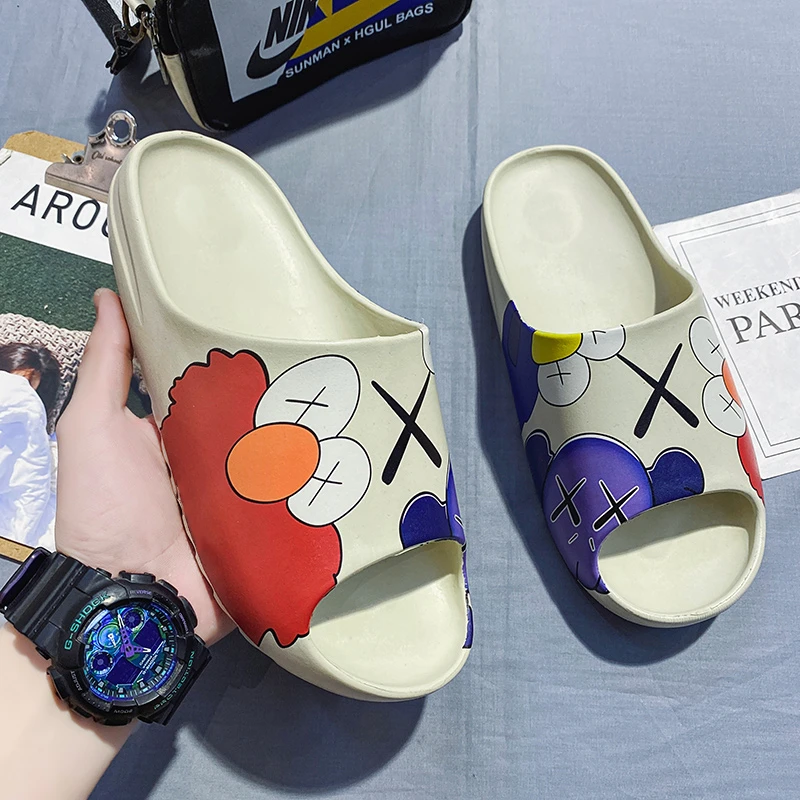 Шлепанцы унисекс с открытым носом, мягкие Нескользящие сандалии на платформе, пляжные шлепанцы, симпатичная мультяшная домашняя обувь для женщин