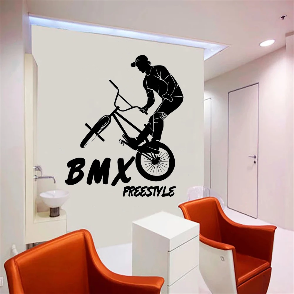 Наклейки на стену с велосипедом BMX, художественный Декор для комнаты мальчика, Экстремальные спортивные виниловые наклейки, домашнее украшение, роспись для спальни и общежития DW11243