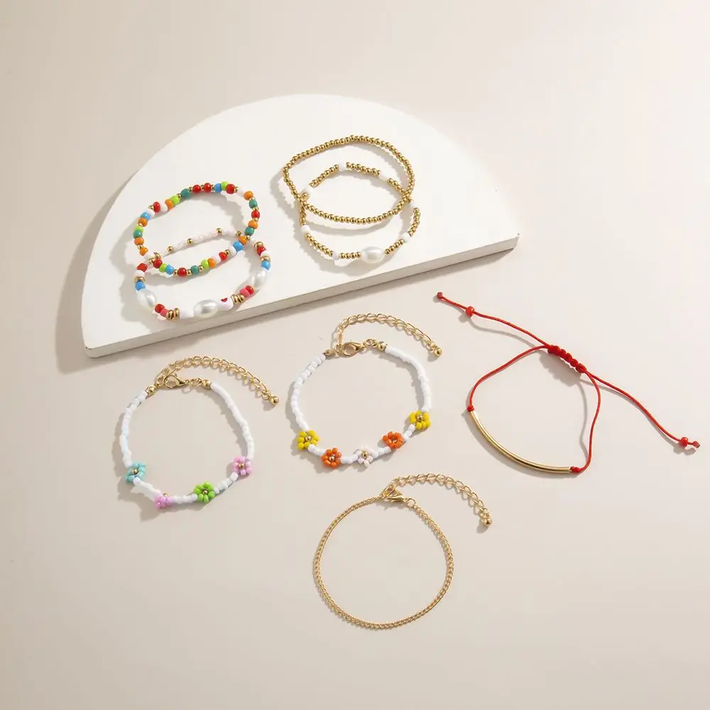 Браслет женский, 8 шт.компл., с цветами и жемчугом, 2020
