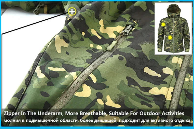 HAN WILD Soft Shell Военная тактическая куртка, Мужская водонепроницаемая ветровка, зимнее теплое пальто, камуфляжная ткань