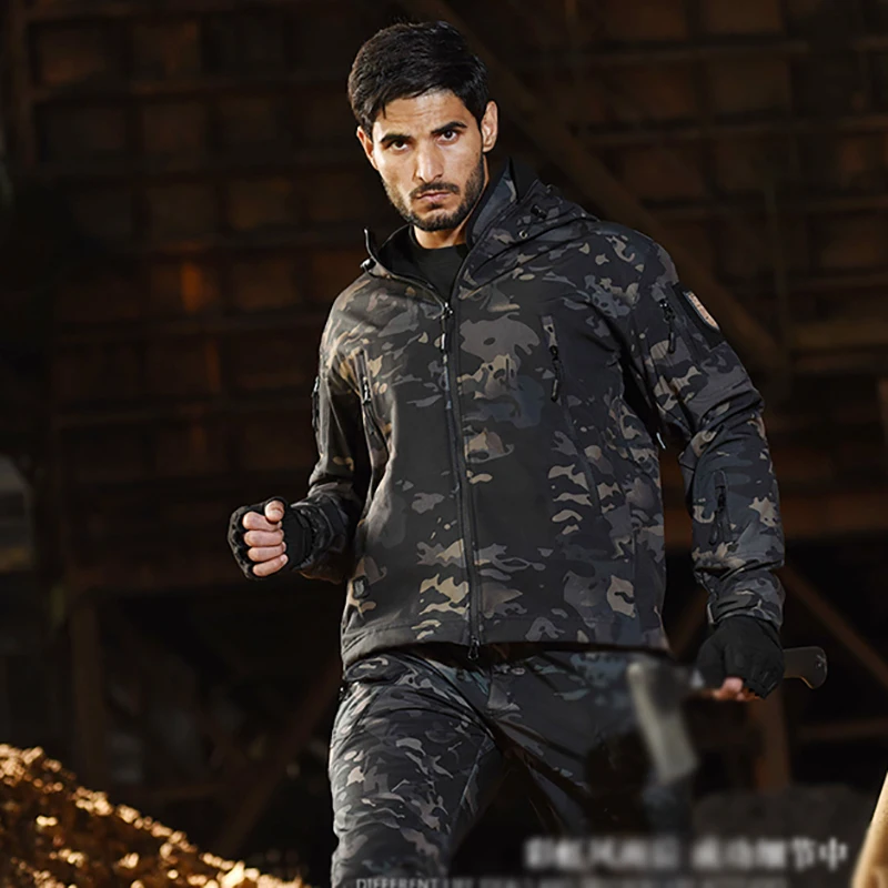 Куртка флисовая, водонепроницаемая, камуфляжная, в стиле милитари