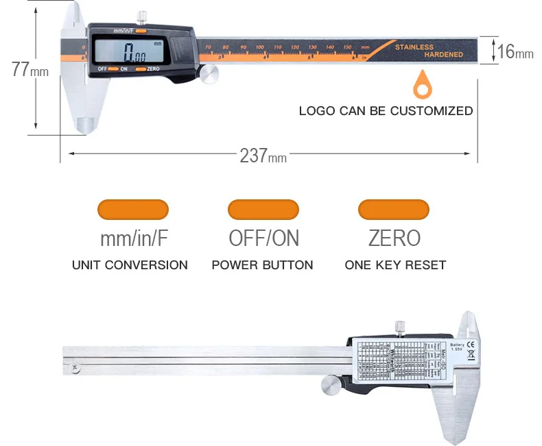 Штангенциркуль из нержавеющей стали, 0-150 мм, 6 дюймов, с цифровым дисплеем