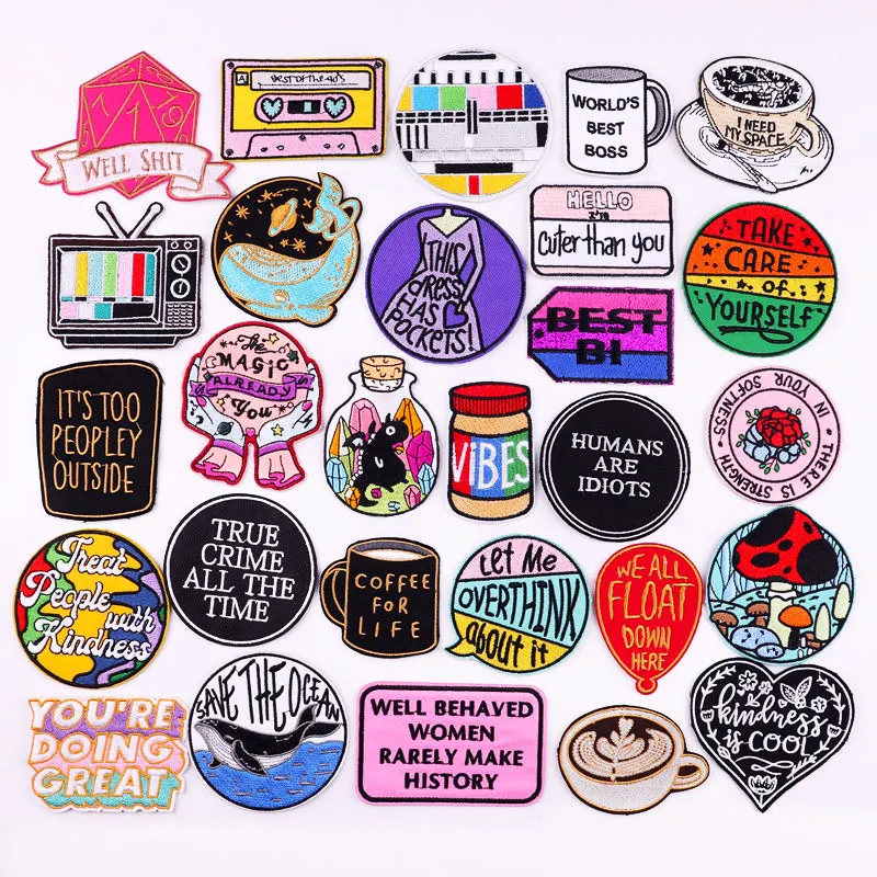 Нашивки с надписью, аппликация в стиле хиппи, вышивка, нашивки для ...