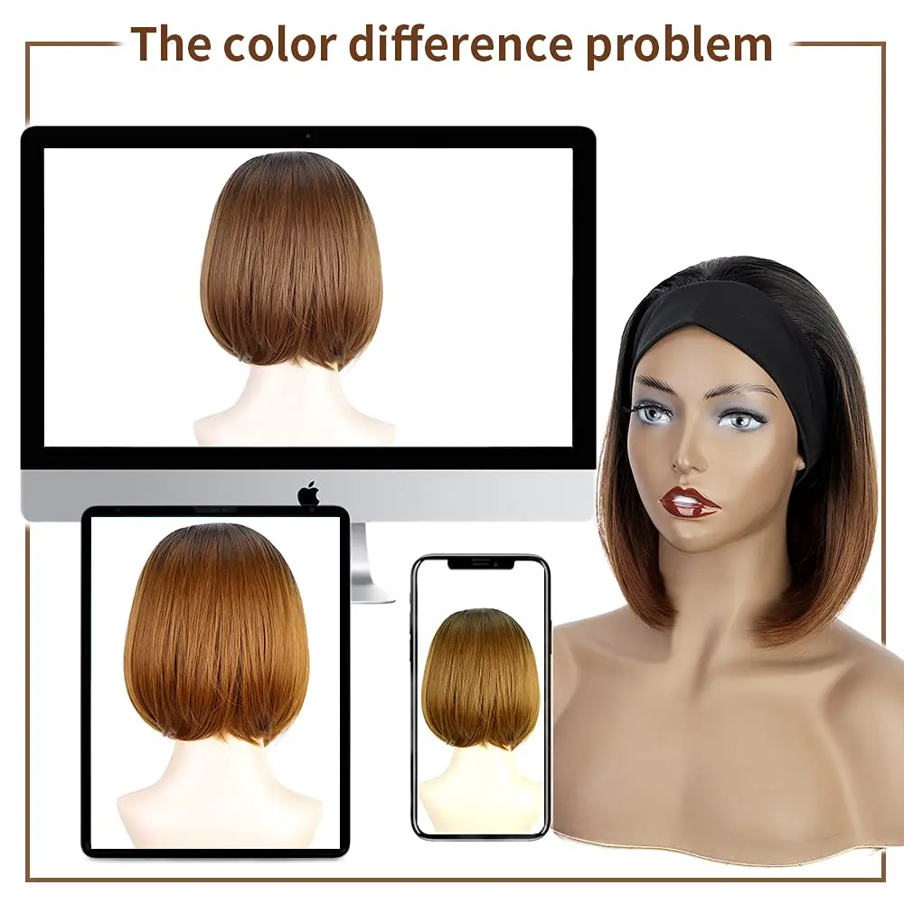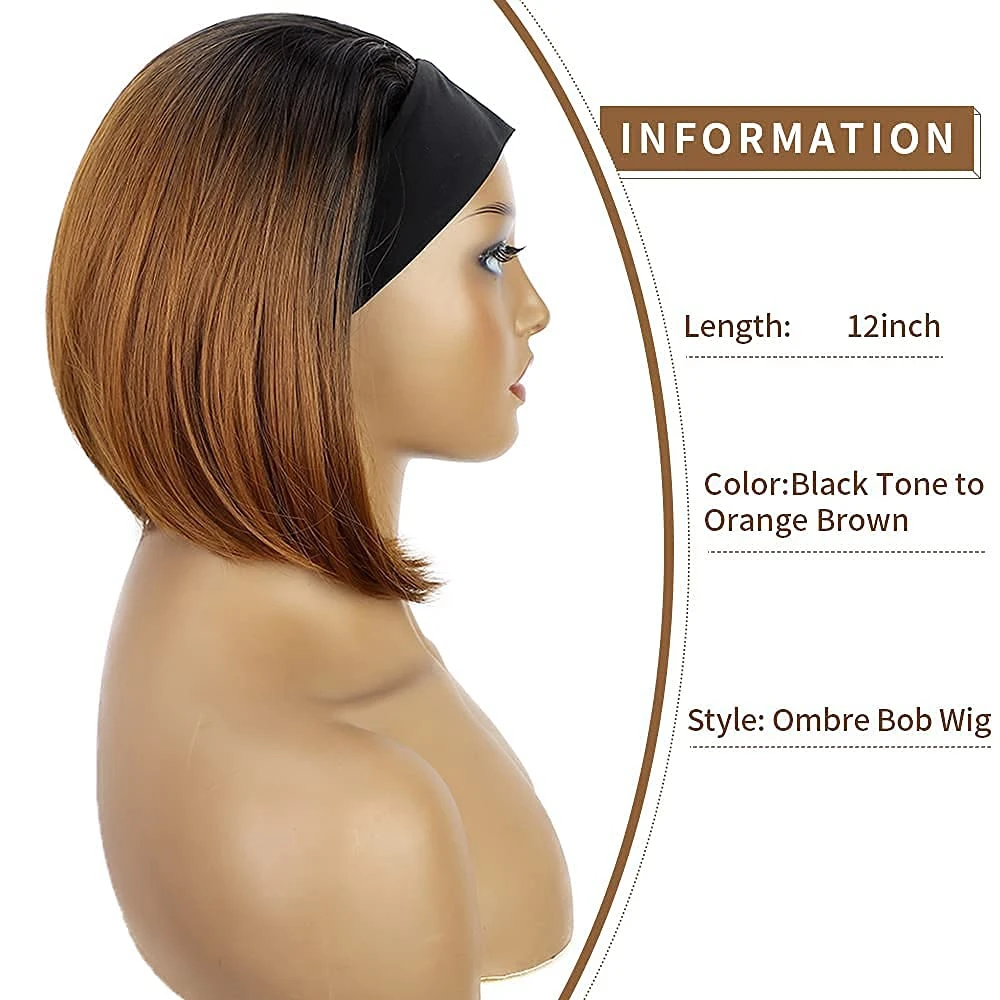 Парик: безклеевой шарф парик с головной повязкойЦвет волос: коричневый цвет; Синтетические парикиДлина волос: 12 дюймов короткие прямые парики на головуПреимущество: доступная цена, удобная шапочка для парика