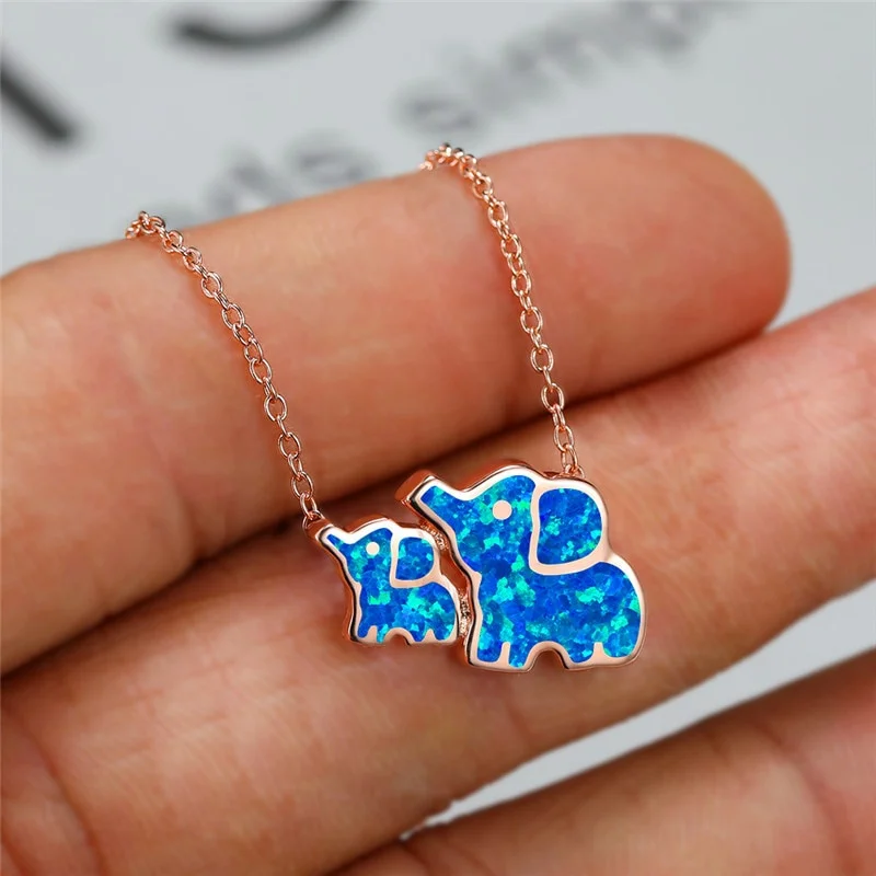 Милая подвеска в виде слона, мамы и слона, голубая цепочка, ожерелье, женское очаровательное свадебное ювелирное изделие для невесты, подарок для матери