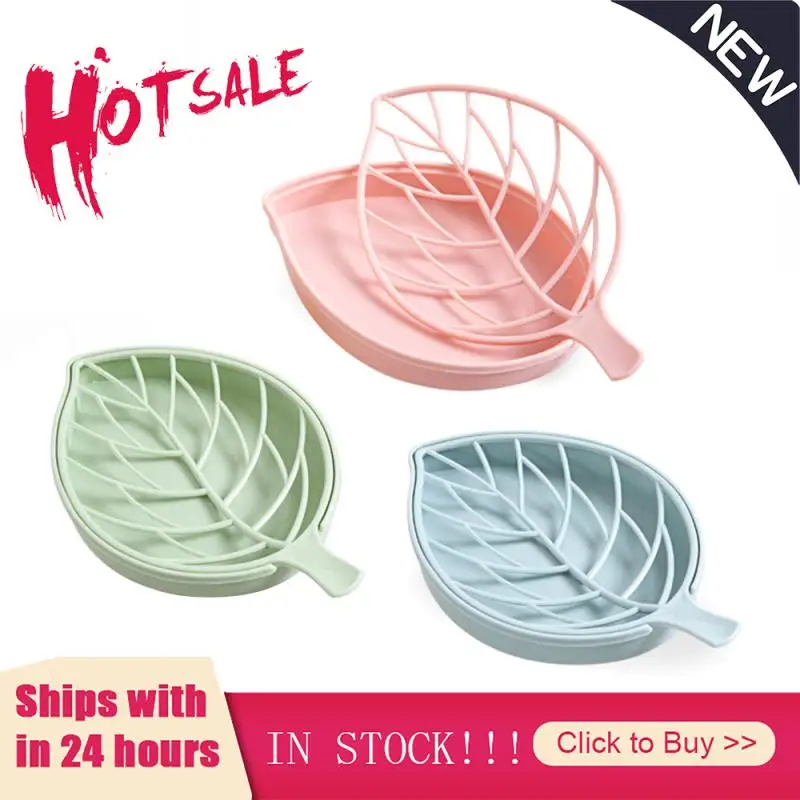 Контейнер для мыла, пластиковая мыльница в форме листа, двухслойная Коробка для мыла, портативные многофункциональные аксессуары для ванной комнаты, случайный цвет