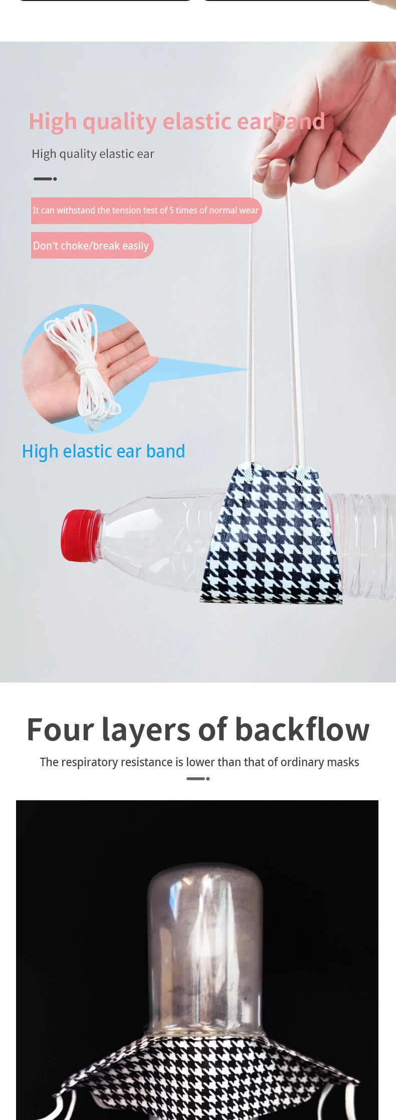 Эта маска имеет уникальный дизайн обтекаемой резки, который может изменить форму лица и не испортит ваш макияж! Модная печатная маска KN95 (индивидуально упакованная)Материал: Нетканое полотно, выдунное из расплава полотноСкорость фильтрации: больше или равна 95%.Параметры: 10 шт./пакетРазмер маски: 205*80 ммФункция: Пыленепроницаемость, защита от капель, защита от автомобильных выхлопных газов, пыльца и другие вредные частицы Особенности маски: 1.Регулируемый переносица, высокая герметичность, лучше подходит для носа, предотвращает частицы от использования зазора, чтобы увеличить комфорт при ношении 2.Высокая эластичная лента, удобная, прочная и не сломана. 3.Четырехслойный фильтрующий материал, ткань удобная, безвкусная и не раздражает кожу 4.Отсутствие запаха и стимуляции, эффективная изоляция вредных частиц Вопросы, требующие внимания:1. Этот продукт не моется. Пожалуйста, убедитесь, что вы используете его в течение срока действия.2. Хранить в сухом и проветриваемом месте, вдали от источников огня и легковоспламеняющихся материалов3. Из-за различных производственных партий и мониторов, продукты могут иметь определенные хроматические аберрации, пожалуйста, поймите