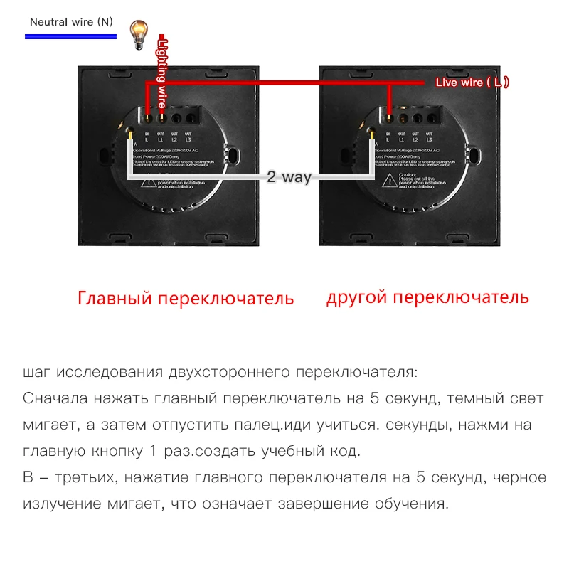 2Way: два способа управления, в двух разных местах для управления одной и той же лампой, означает, что один светильник можно управлять в двух местах двумя