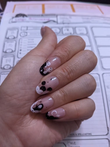 Эти ногти Потрясающие! Они очень милые и выглядят так же, как на фотографиях. Клей, с которым они поставляются, очень хорошо работает. Я настоятельно рекомендую это, и в следующий раз получу второй набор для использования клеевых пластин. Спасибо!