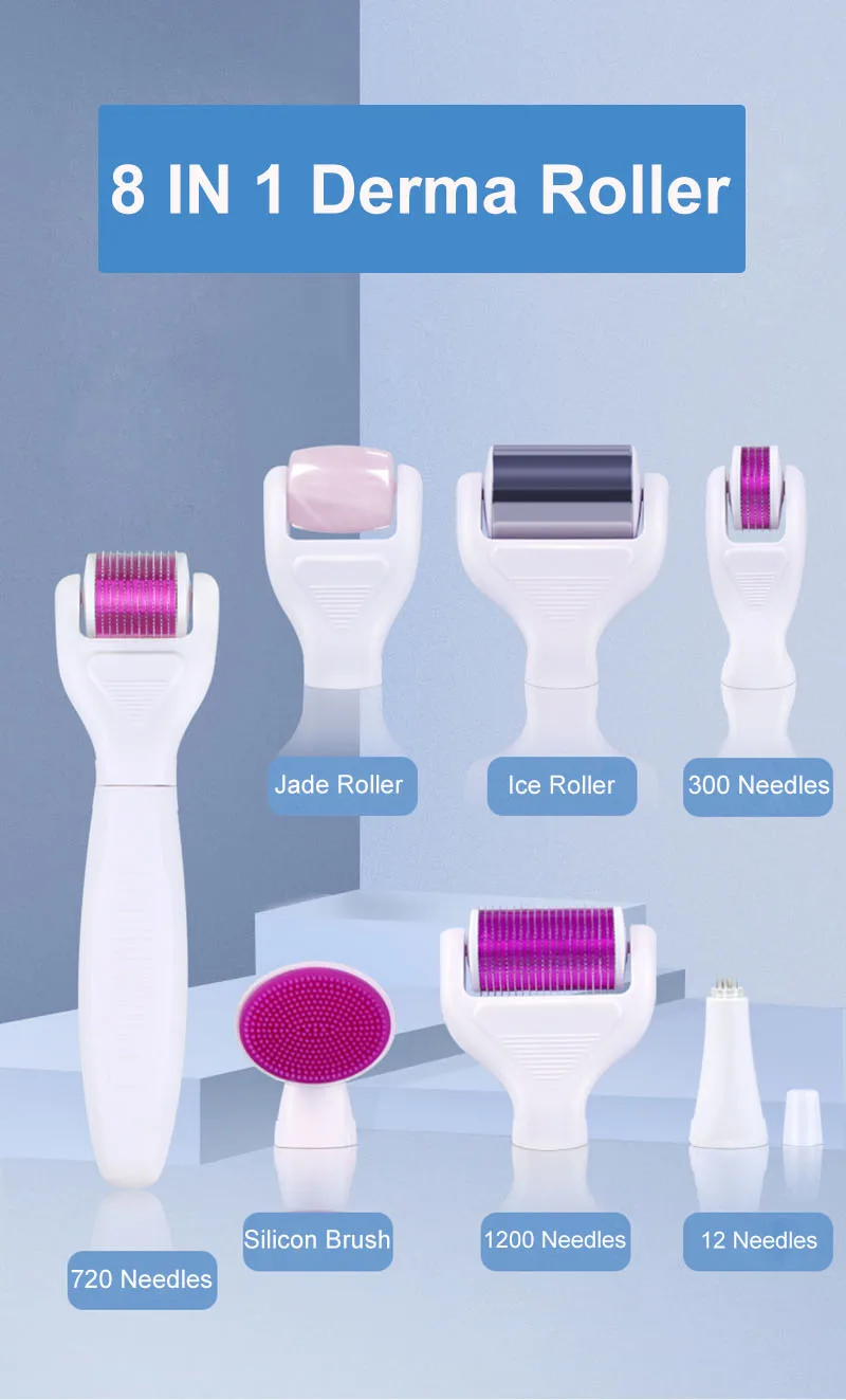 8 в 1 титановый Дерма ролик микроиглы комплект нефритовый роллор для лица Омоложение кожи уменьшение морщин ручной уход за лицом массаж