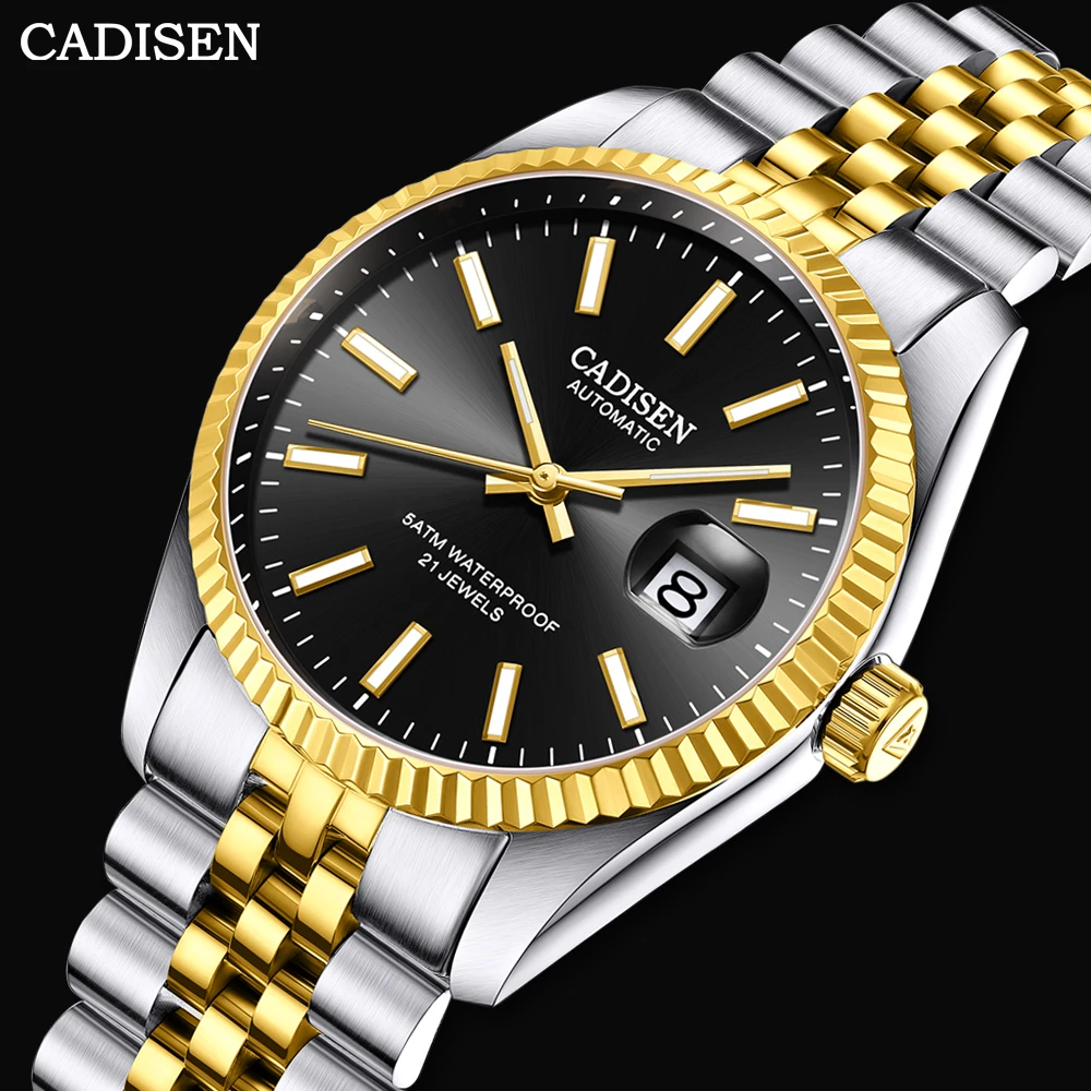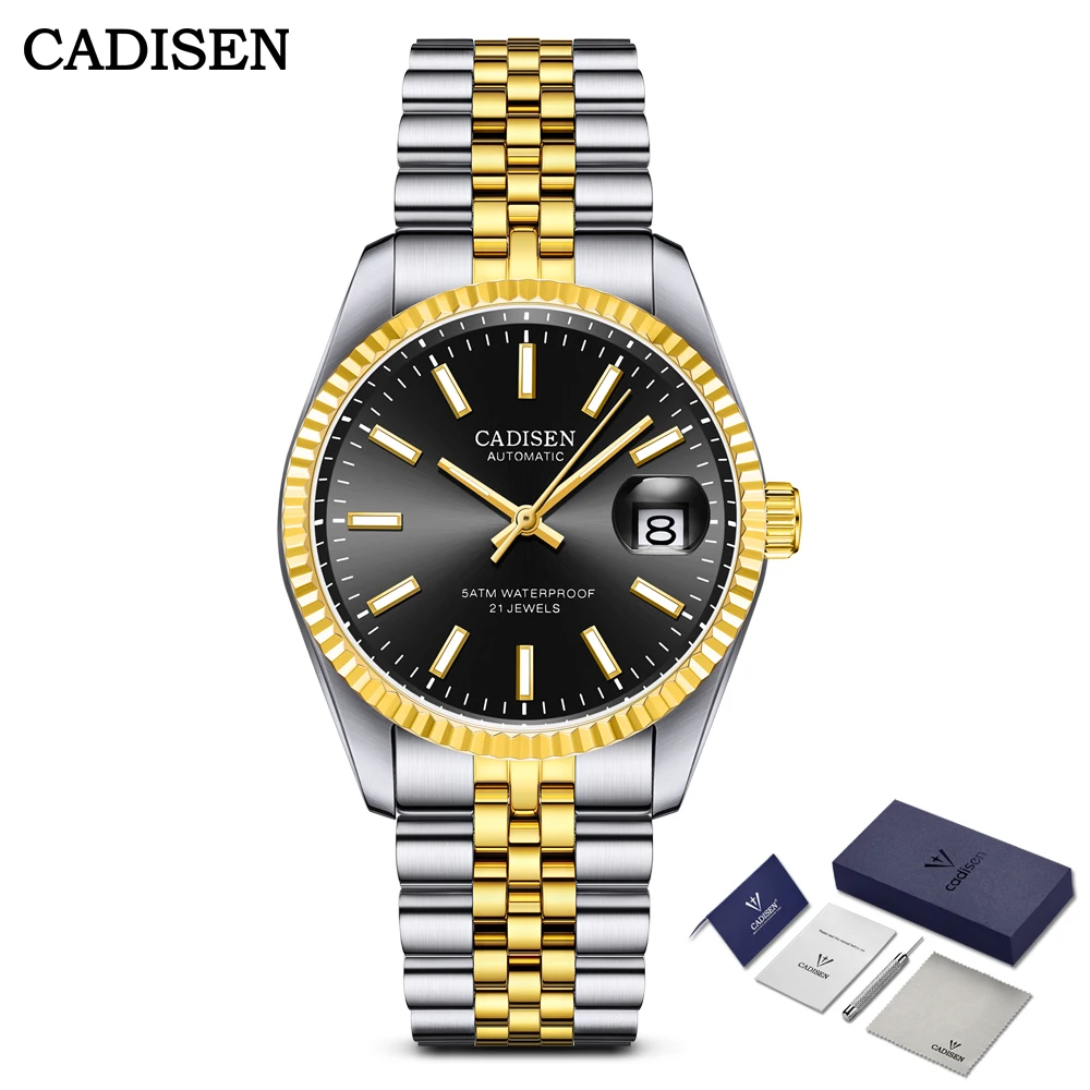 Cadisen C8053 38 мм светящиеся автоматические механические наручные часы для мужчин золотые часы