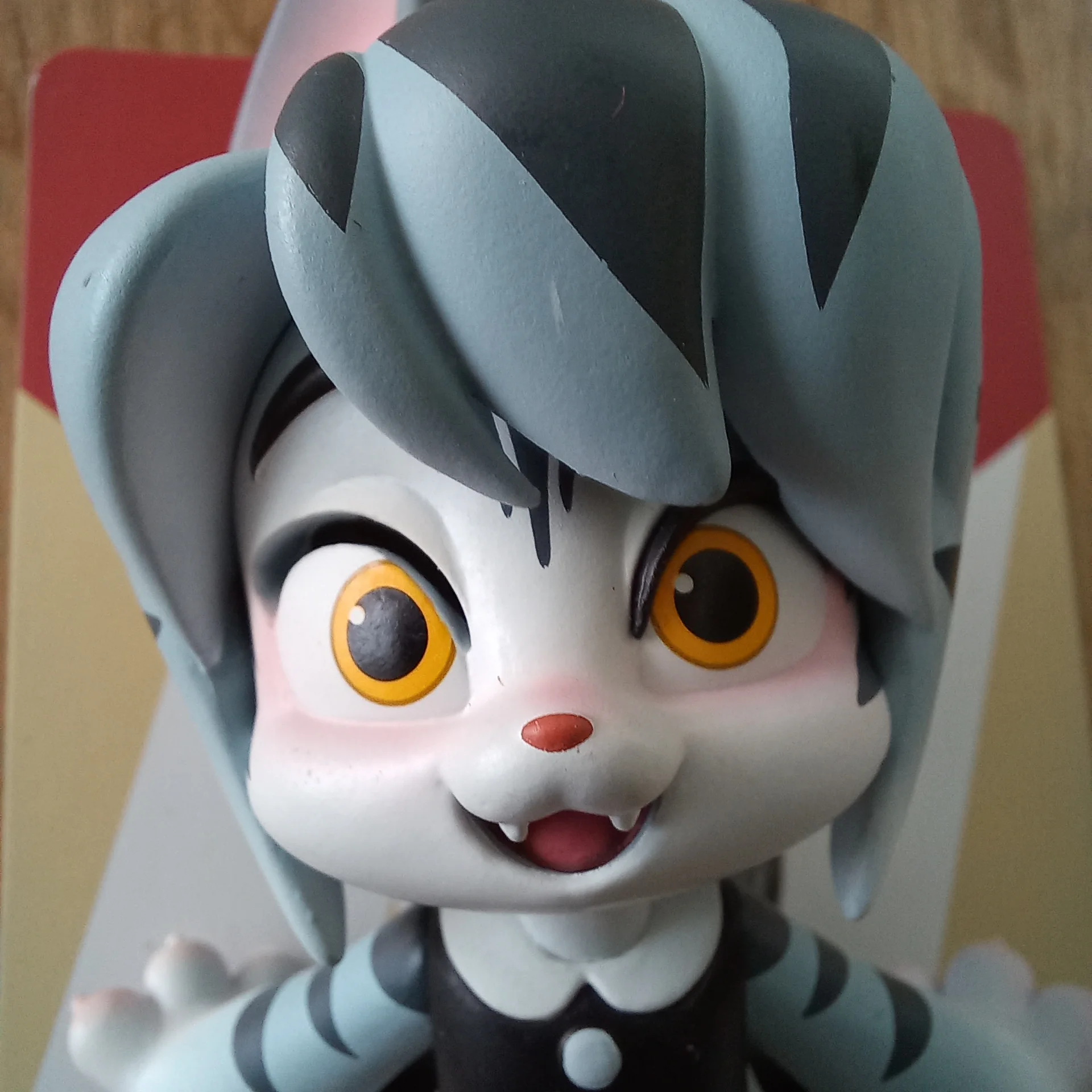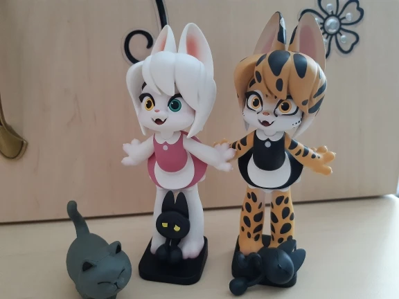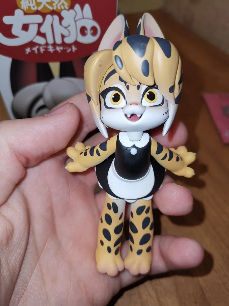 Увидев сильно повржденную и деформирущую посылку. То уже не надеялся увидеть фирменную коробочку целой, но к счастью все обошлось. Продавец положил к посылке сухие духи и маленького Котика. А сама горничная кошечка классная и в комплекте уже идёт карточка самой игрушки, а также подставка и спутник виде Котика.