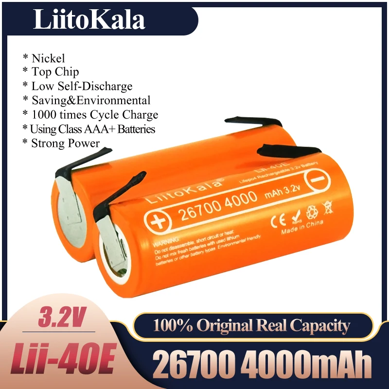 Аккумуляторная батарея LiitoKala Lii-40E 3,2 В 26700, аккумуляторная батарея LiFePO4 4000 для 24V e-bike powe + никелевые листы DIY
