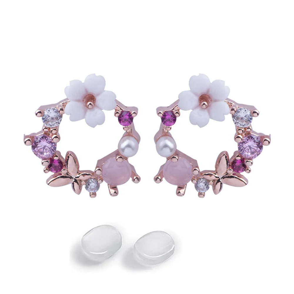 Серьги-клипсы с цветком и бабочкой, маленькие круглые, без пирсинга