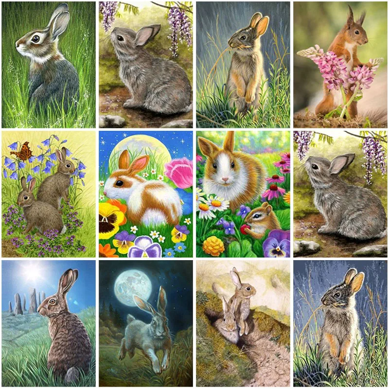 Кролик DIY 5D алмазная живопись, полная квадратная дрель, животное, алмазная вышивка, мозаика, дом, ручная работа, настенное искусство, домашний декор, подарок