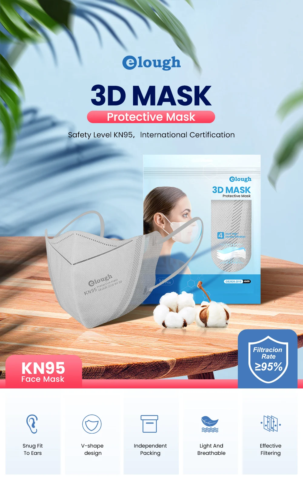 Elough 3D KN95 защитная маска, черная 4-слойная одноразовая маска, хирургические маски, униформа FFP2, негра, тушь для ресниц KN95, Черная