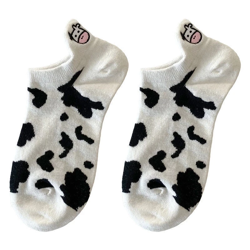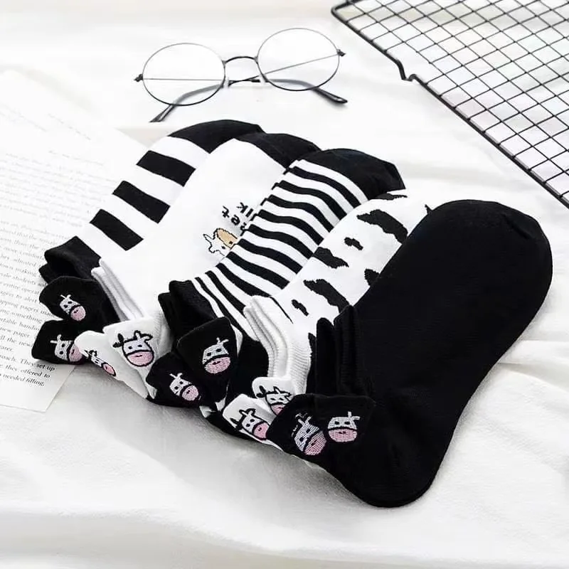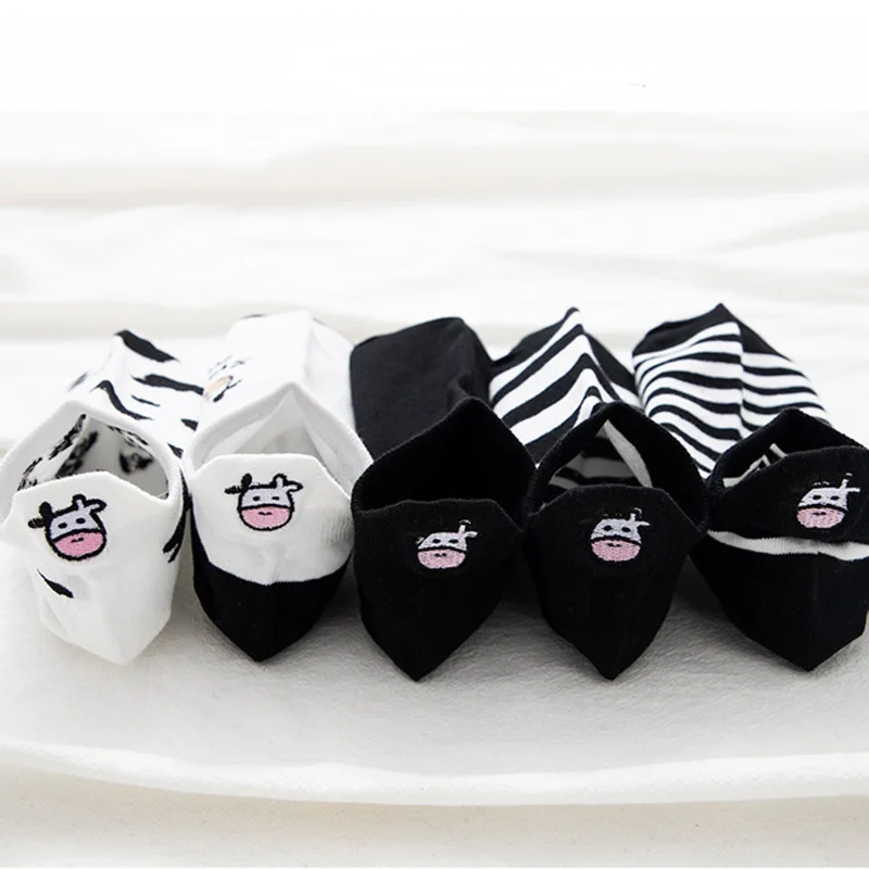 Упаковка: 5 пар/упак. BОтсутствие белого цветаНоски-башмачки с вышивкой коровы