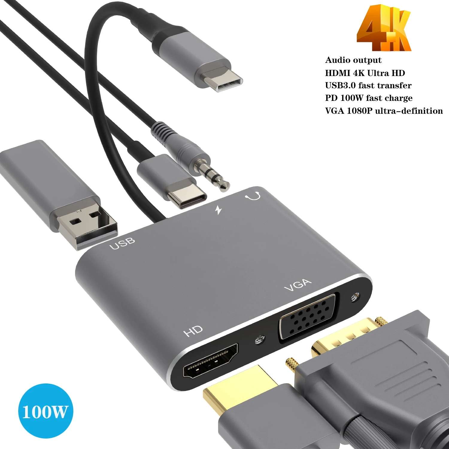 USB C-концентратор для HDMI VGA-адаптера, 5 в 1 USB C-HDMI-концентратор, мультипортовый адаптер, совместимый с USB C ноутбуками Nintendo