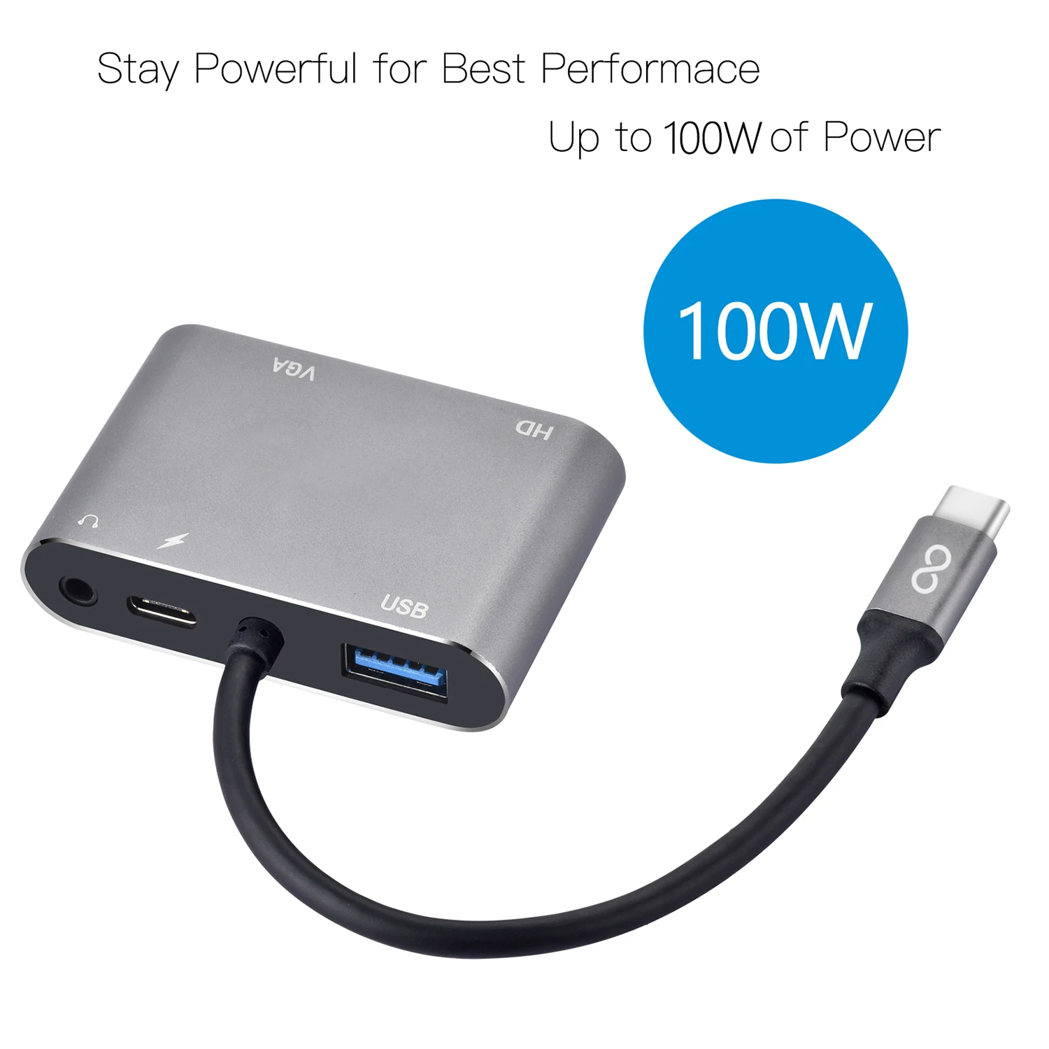 【Все в одном 】 Расширьте свой usb-порт на HDMI, VGA выход, аудиовыход, USB 3,0 и usb-c порт для зарядки. Подключите устройства, оснащенные разъемом Type-C, к дисплеям HDMI и VGA, а также подключайте стандартные usb-устройства и USB-C кабели для зарядки.【HDMI и VGA порт 】 HDMI порт Макс sup порт 4K UHD 3840 × 2160 @ 30 Гц или VGA дисплей до 1080P @ 60 Гц Full HD. Когда два порта работают одновременно, максимальное разрешение двух составляет 1920x1080P @ 60 Гц. Примечание: режим расширения, когда vga и hdmi работают в то же время. Tw o мониторы показывают те же изображения.USB3.0 и передача аудио] поддержка USB 3,0 сверхвысокоскоростная (5 Гбит/с) передача, обратная совместимость с USB2.0. Подключите клавиатуру, мышь, HDD, флэш-накопитель или usb-кабель и другие устройства для синхронизации и зарядки смартфонов или других устройств, передачи аудио в одном направлении или передачи синхронизации VGA, вы можете связать гарнитуры, гарнитура микрофонов и других устройств!【PD зарядка 】 зарядный порт c-типа может обеспечить питание до 100 Вт для ноутбука с usb-питанием и обеспечить дополнительную мощность жесткого диска. DVD драйвер и аксессуары подключаются к usb-порту одновременно. (Не подходит для Apple SuperDrive)【Широкая Совместимость: 2015/16/17/18 MacBook/MacBook Pro, iPad Pro 2018, Macbook air 2018, Surface Book,Google Chromebook Pixel,Dell XPS 12/13/15, HP Spectre X2/X360, acer Spin7, Samsung S8/S9 + и многое другое. Перед покупкой, пожалуйста, обратитесь к списку совместимости.