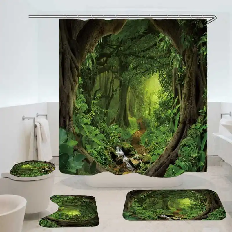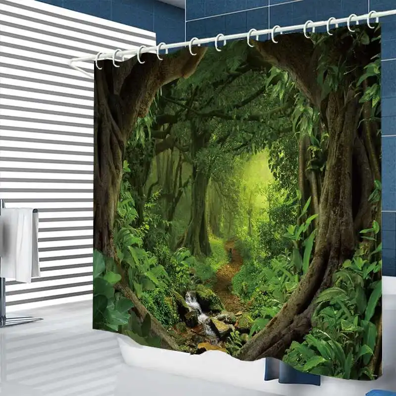 Тканевая занавеска для душа с 3d-изображением пейзажа леса водопада...