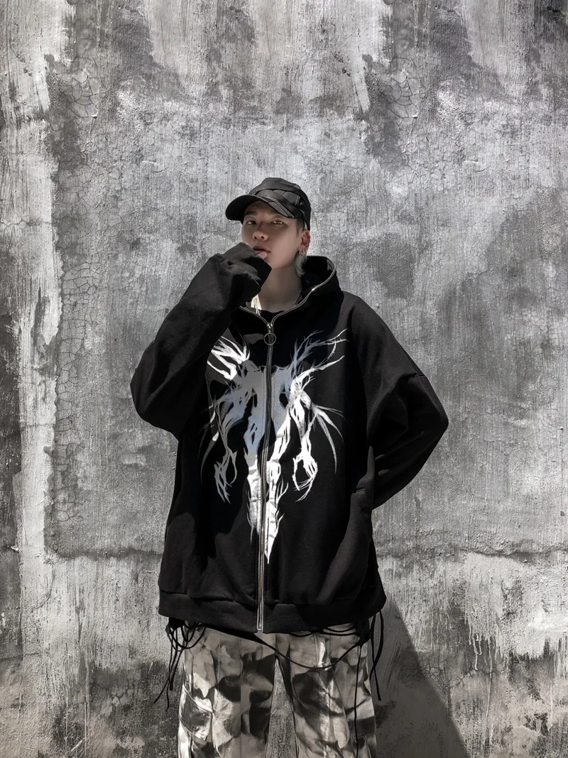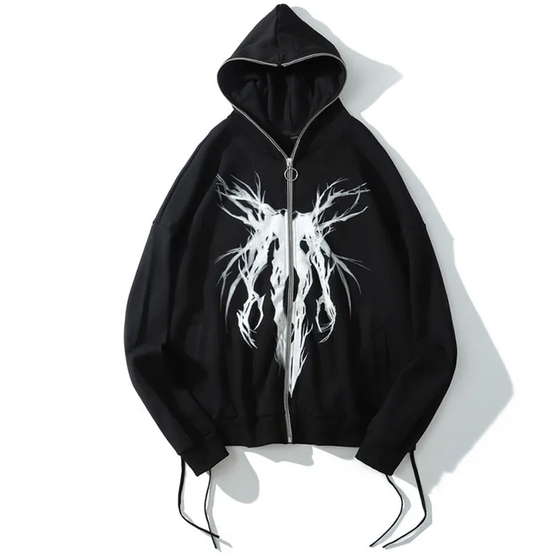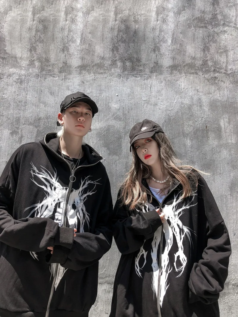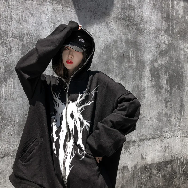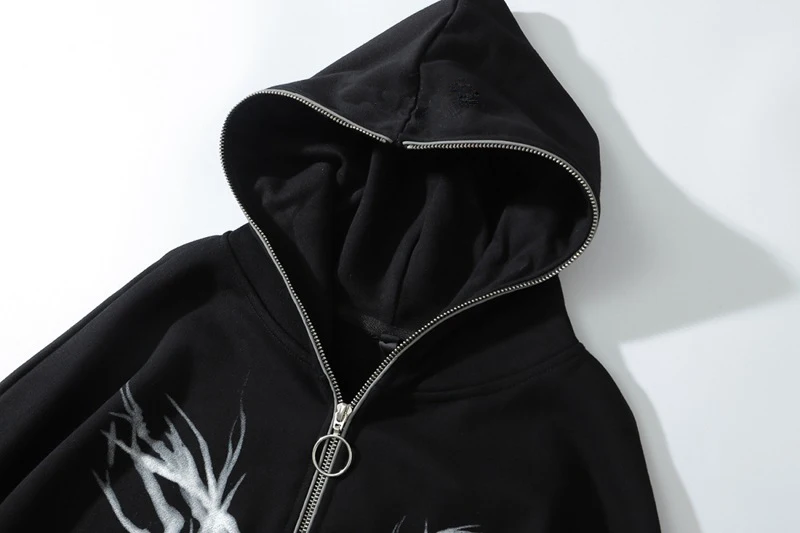 Толстовка с капюшоном и лентой, на молнии, в стиле панк