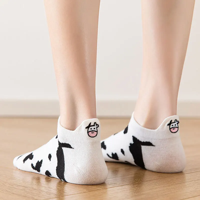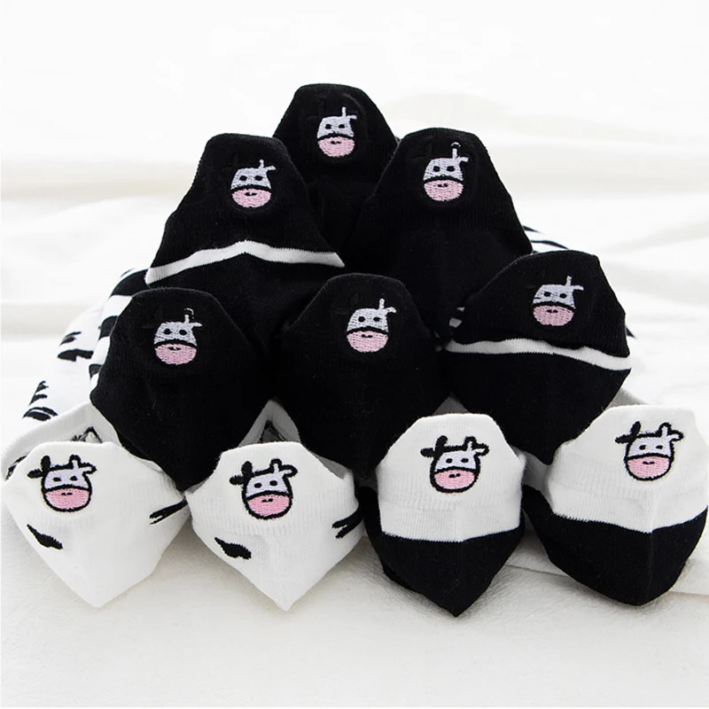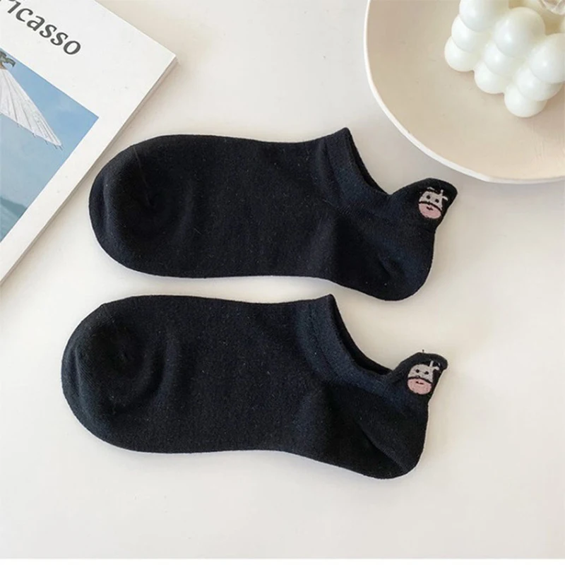 Упаковка: 5 пар/упак. BОтсутствие белого цветаНоски-башмачки с вышивкой коровы