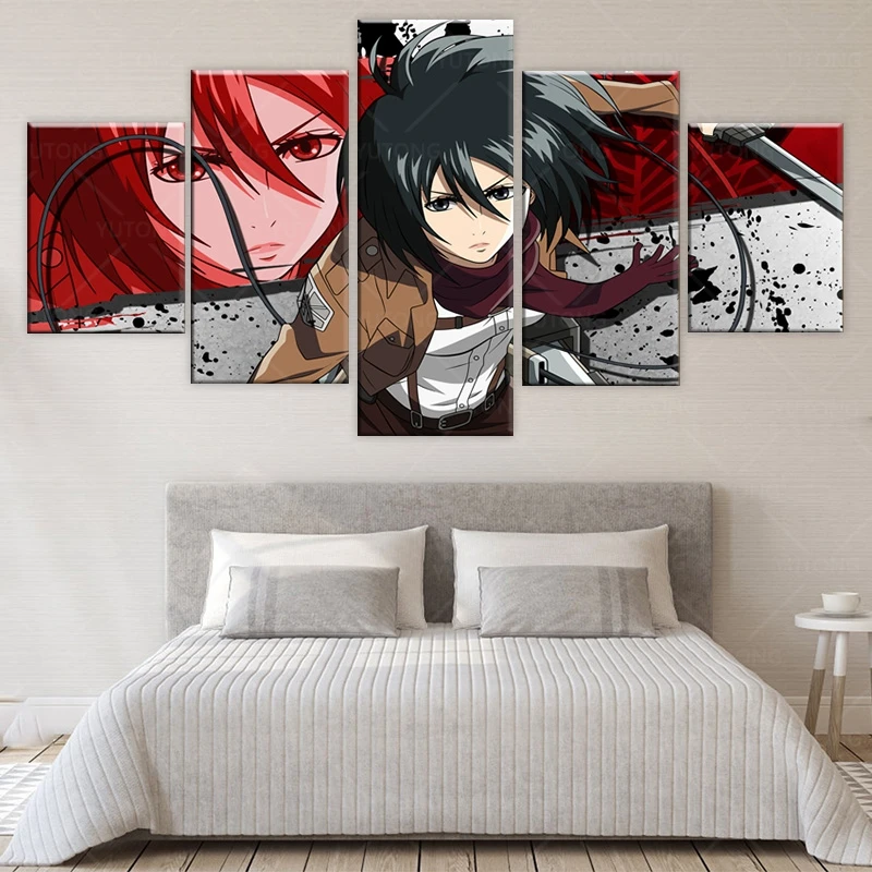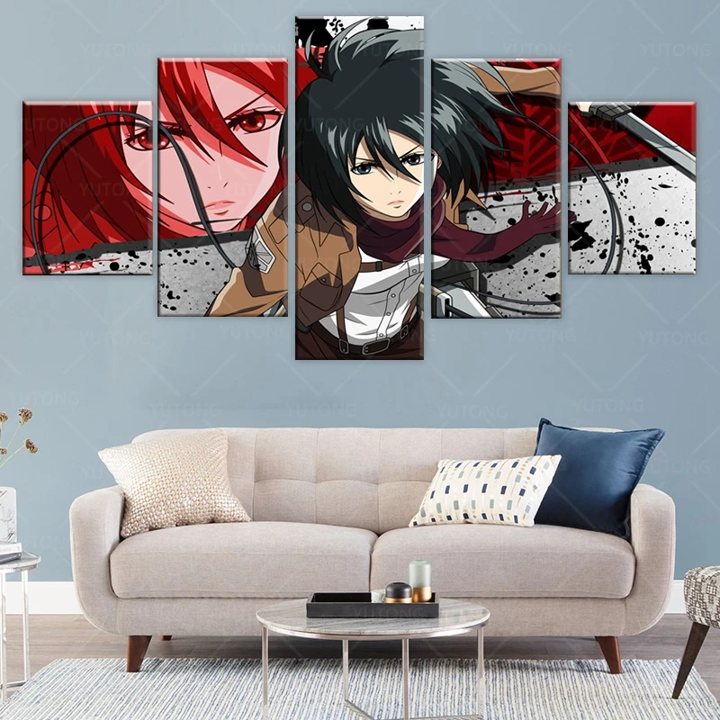 Холст, напечатанные Современные настенные картины, картины для домашнего декора, 5 шт., Атака Титанов, Атака Титанов, атака на титанов, постер с аниме
